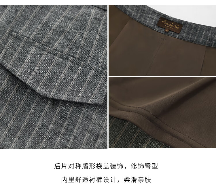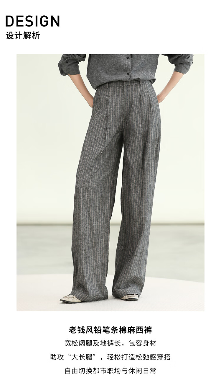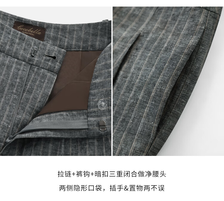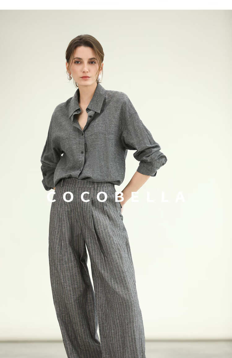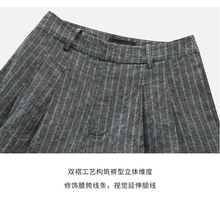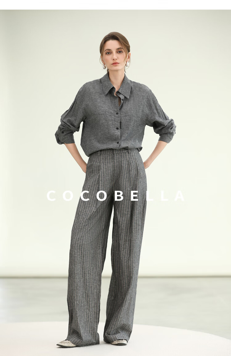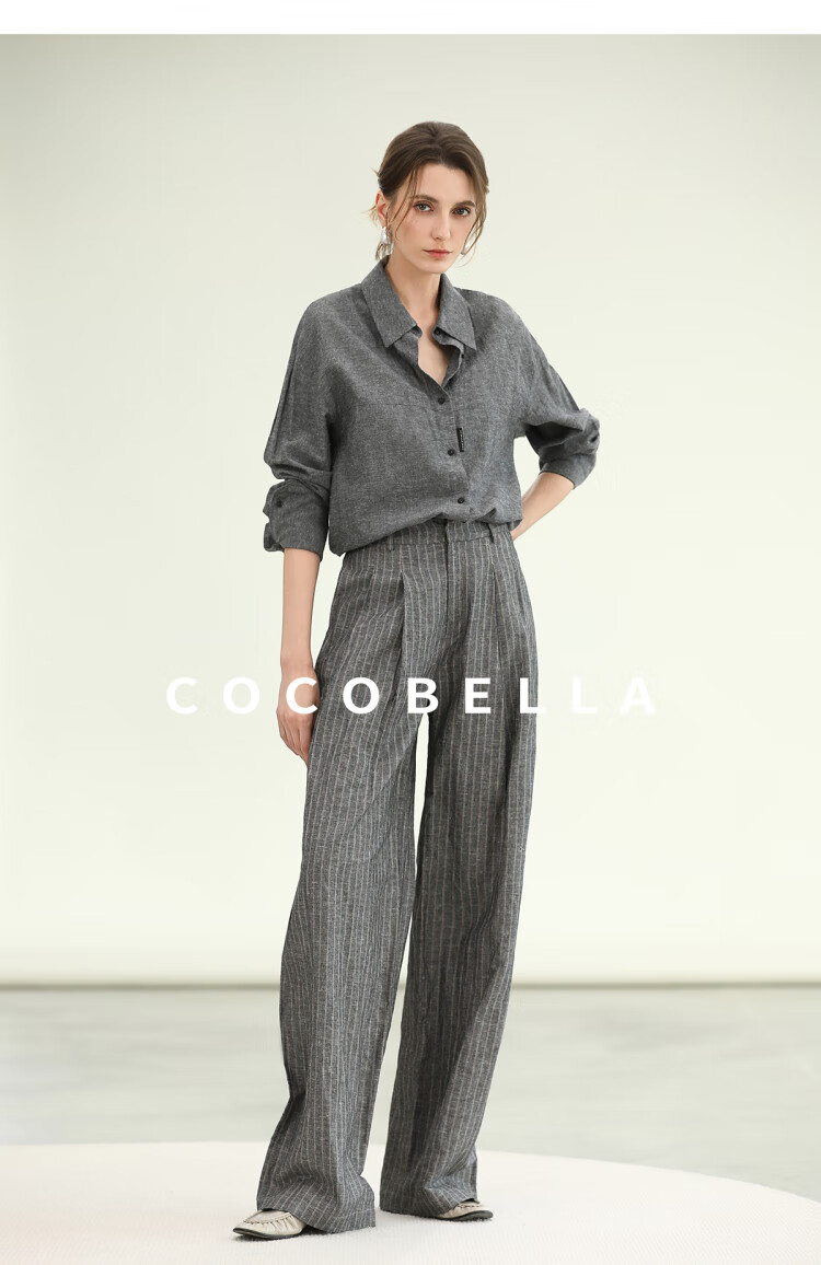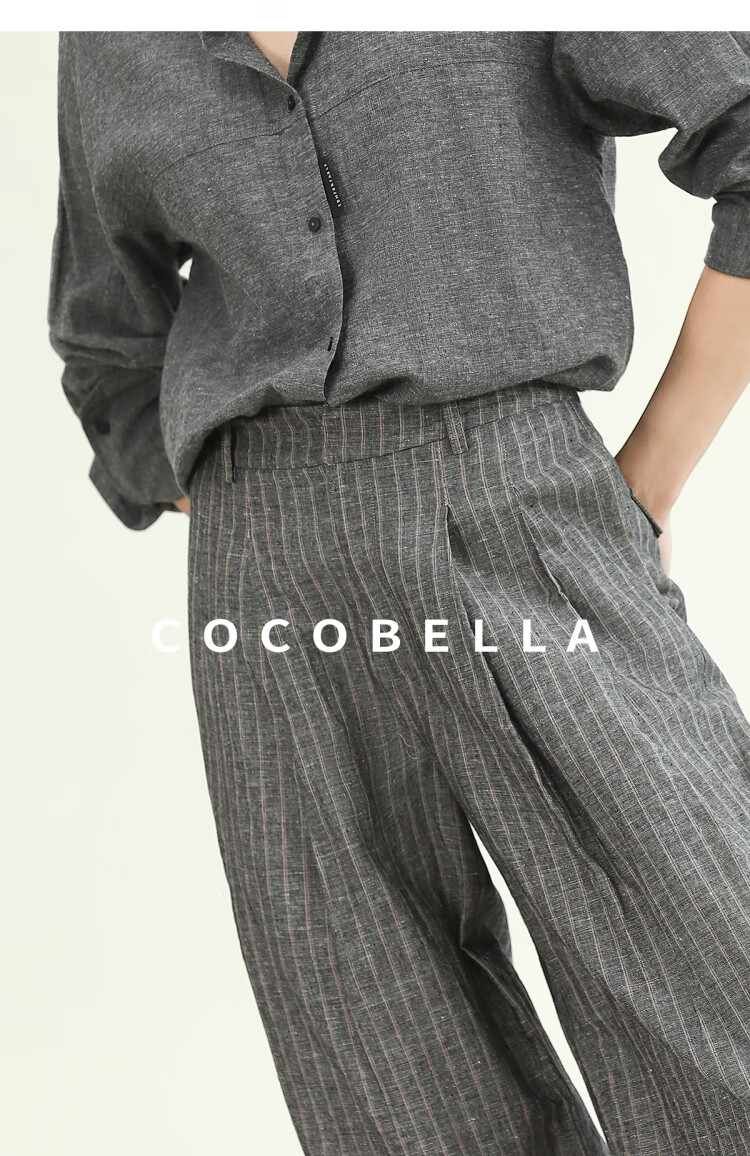 COCOBELLA商务休闲亚麻长裤条纹捏褶阔腿裤夏棉麻西裤PA0026