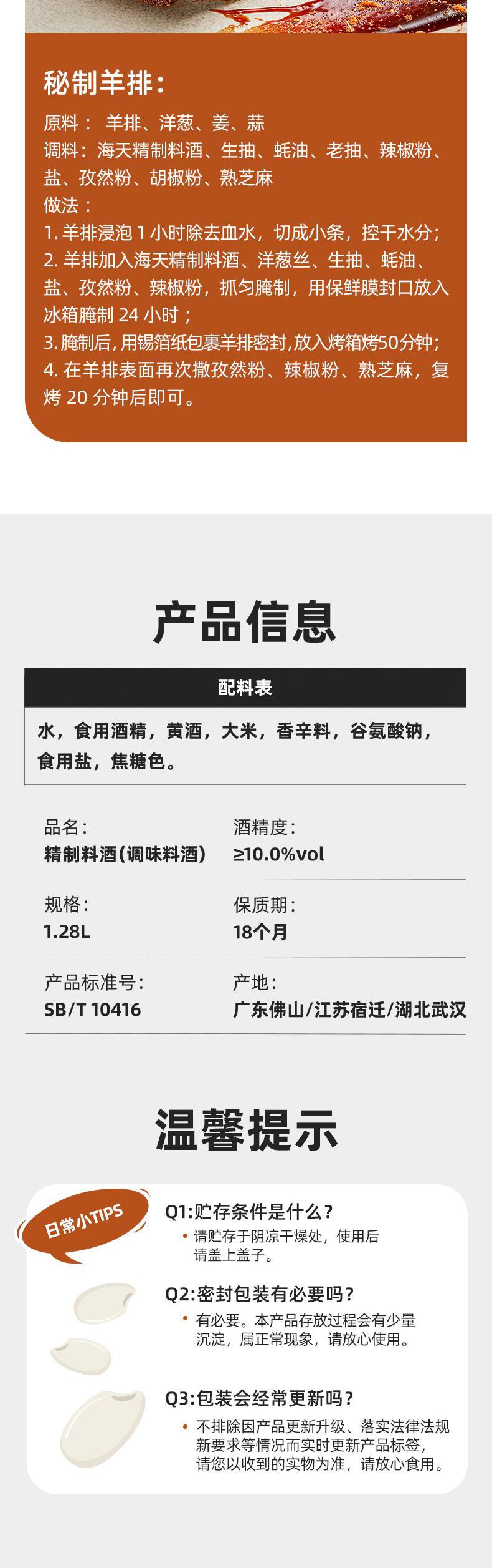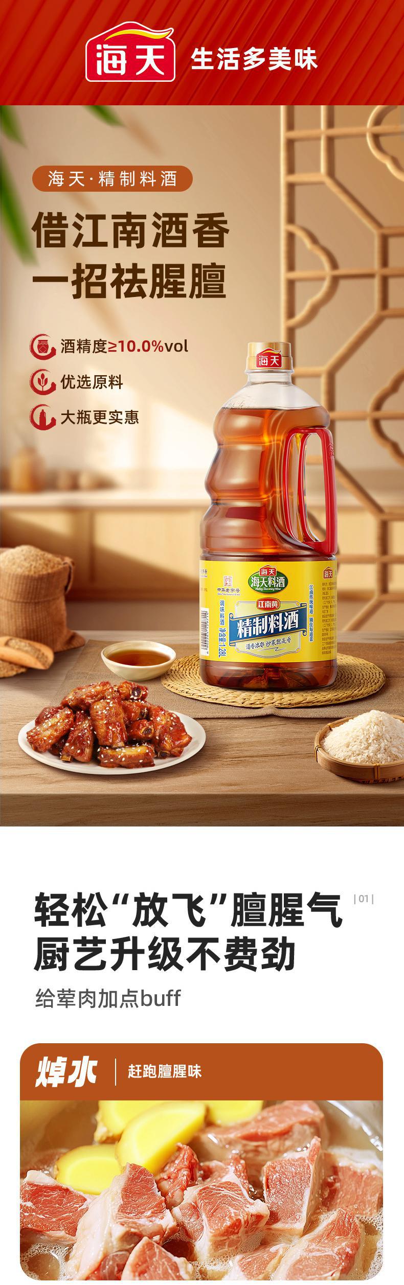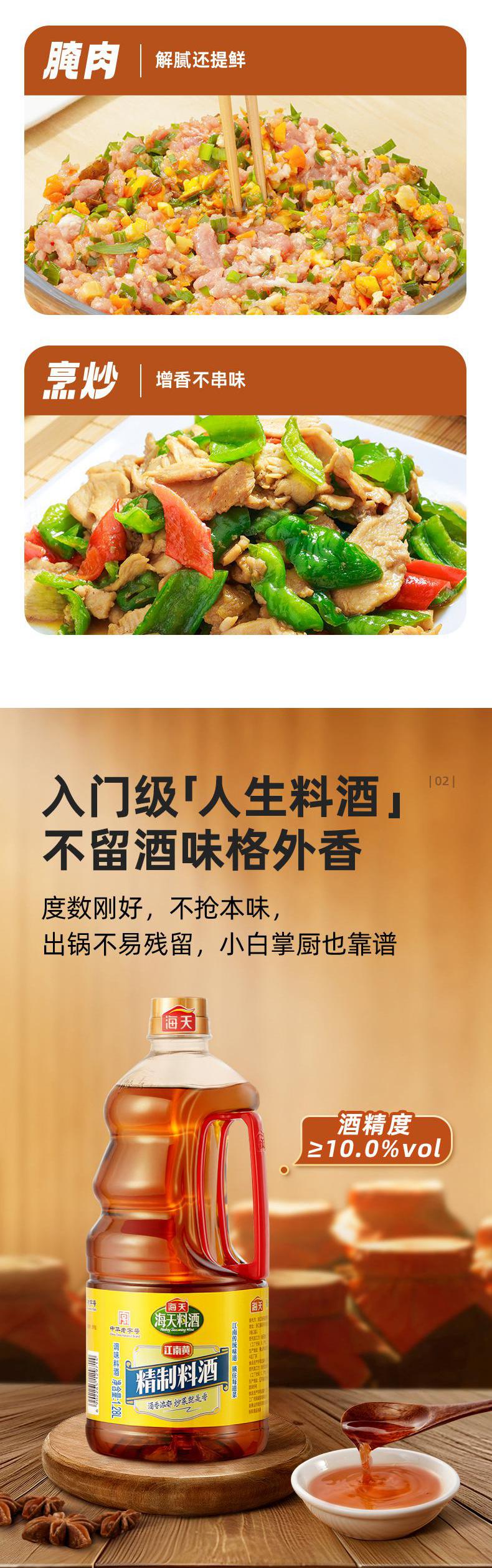 【自营】海天 精制料酒1.28L*1瓶黄酒烹饪酒新鲜健康美味 KJDF-20230310-95