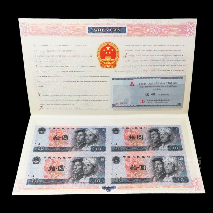 第四版人民币 10元劵 80版四连体钞