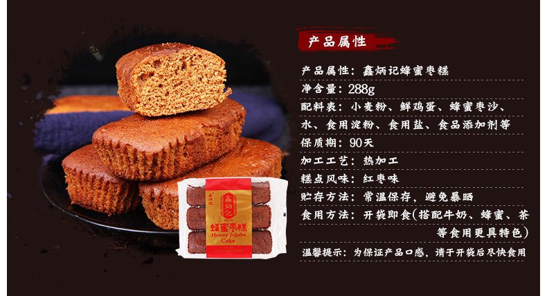 鑫炳记蜂蜜枣糕288g山西特产小吃早餐食品传统糕点休闲零食蛋糕