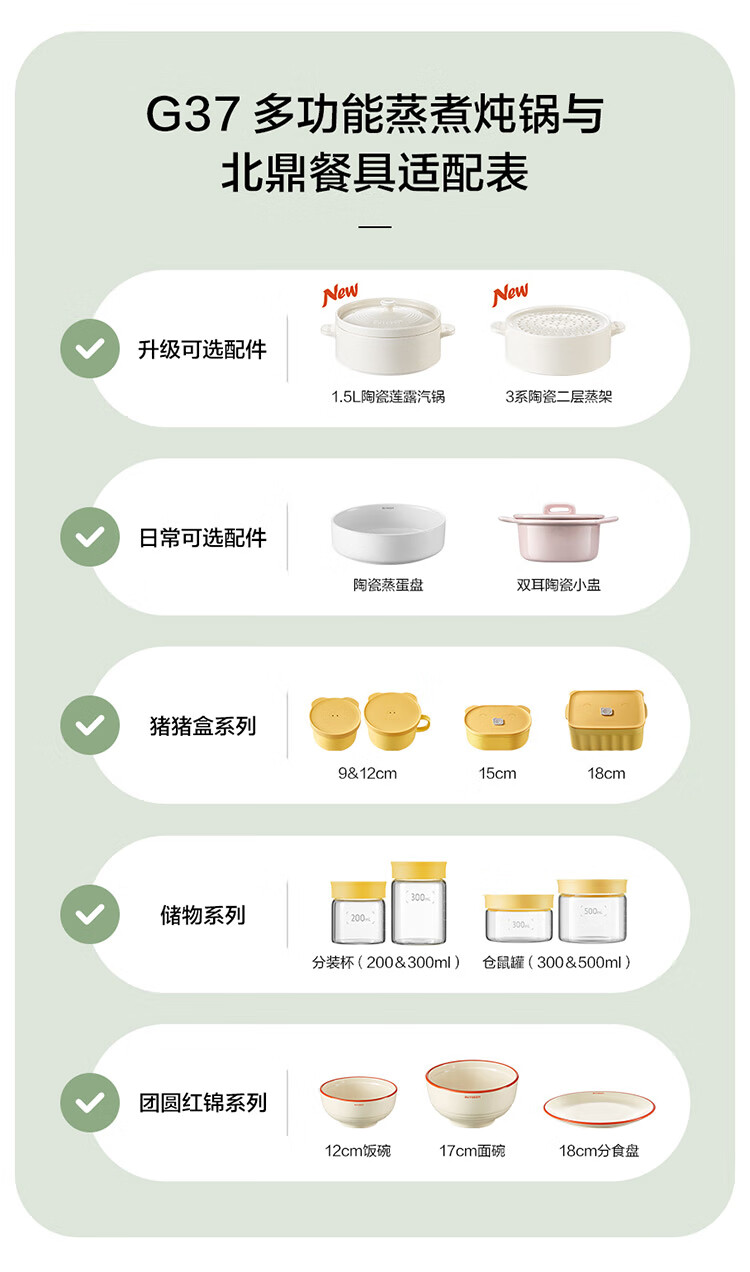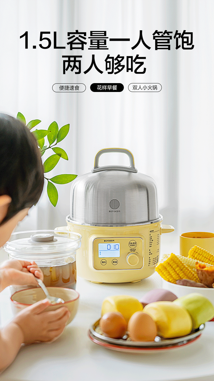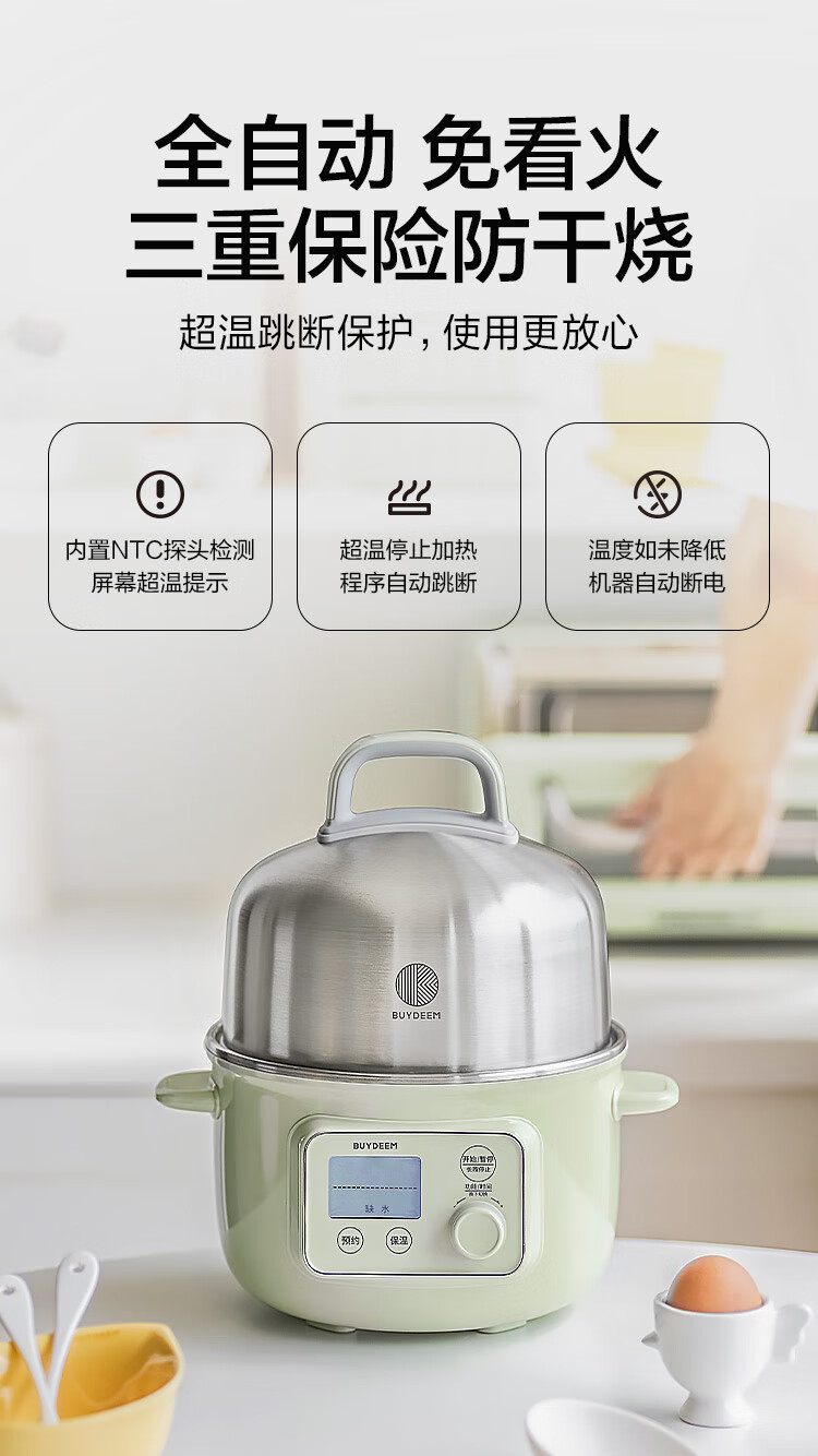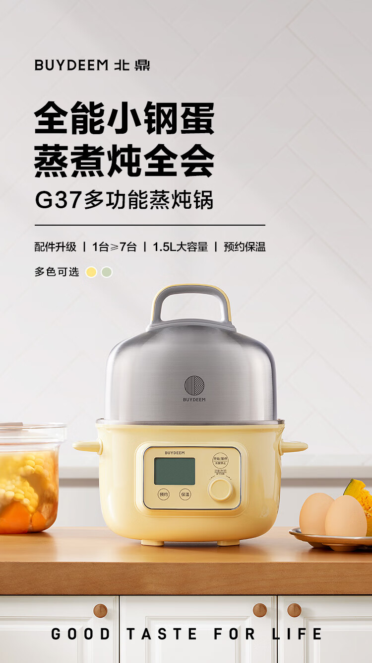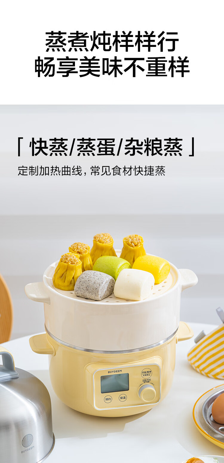 【专柜-北鼎】北鼎G37/002 多功能电蒸锅电煮锅电火锅 浅杉绿预约保温1.5L