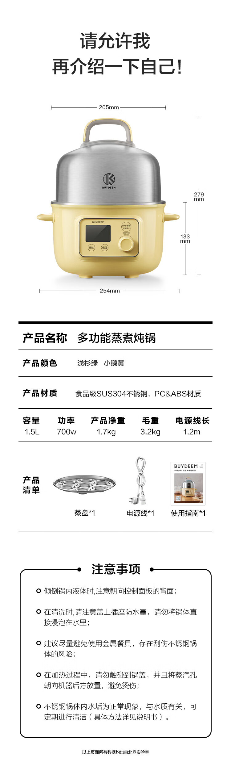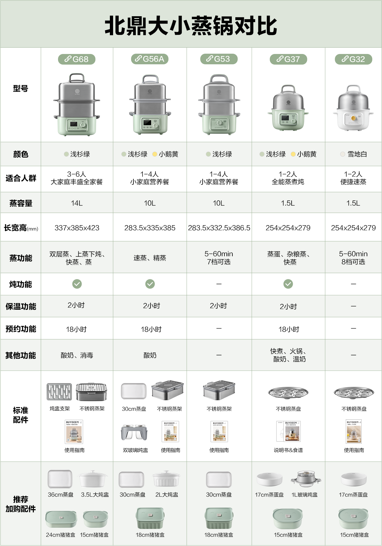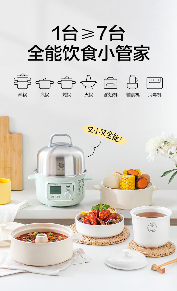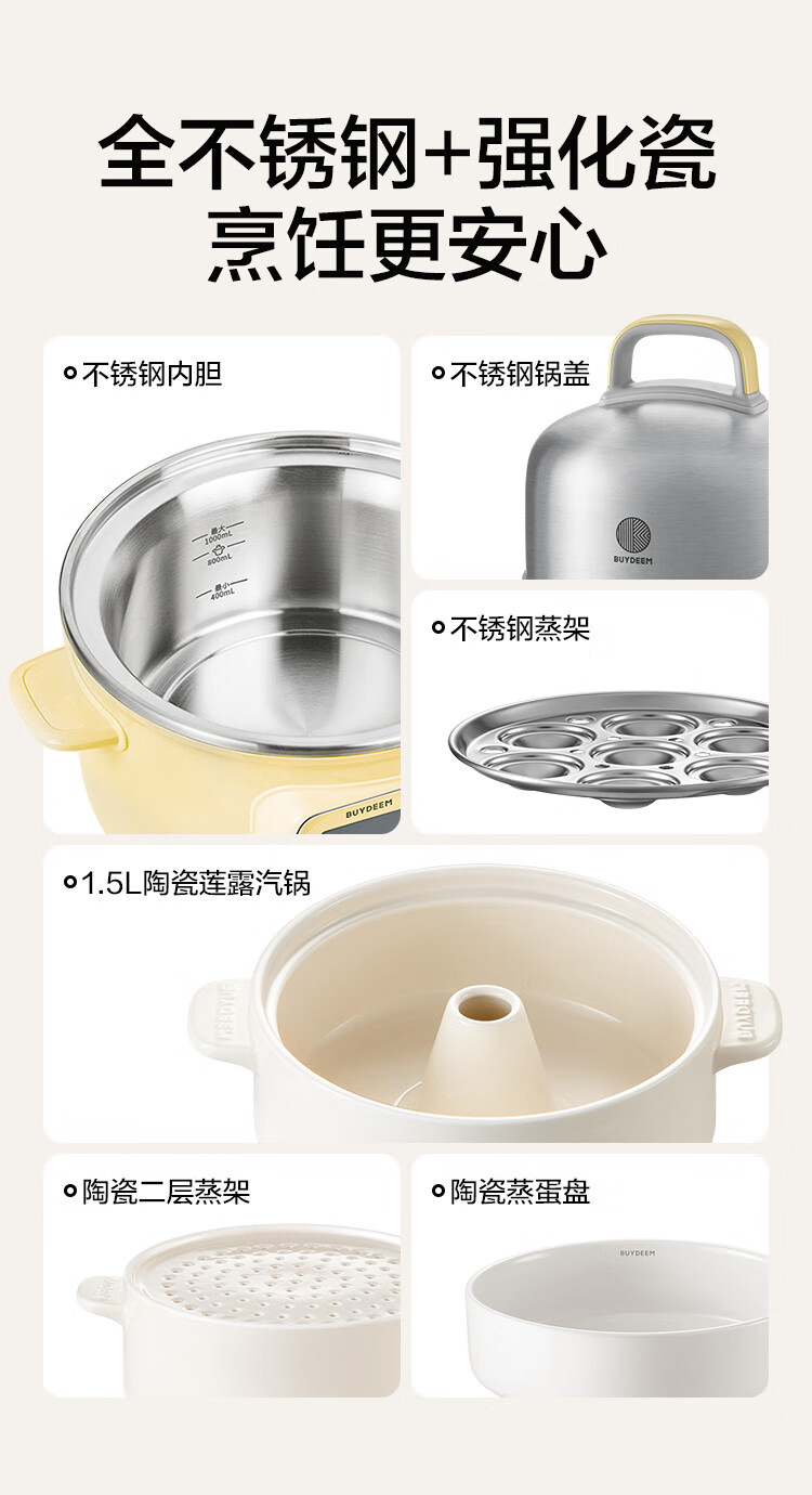 【专柜-北鼎】北鼎G37/002 多功能电蒸锅电煮锅电火锅 浅杉绿预约保温1.5L