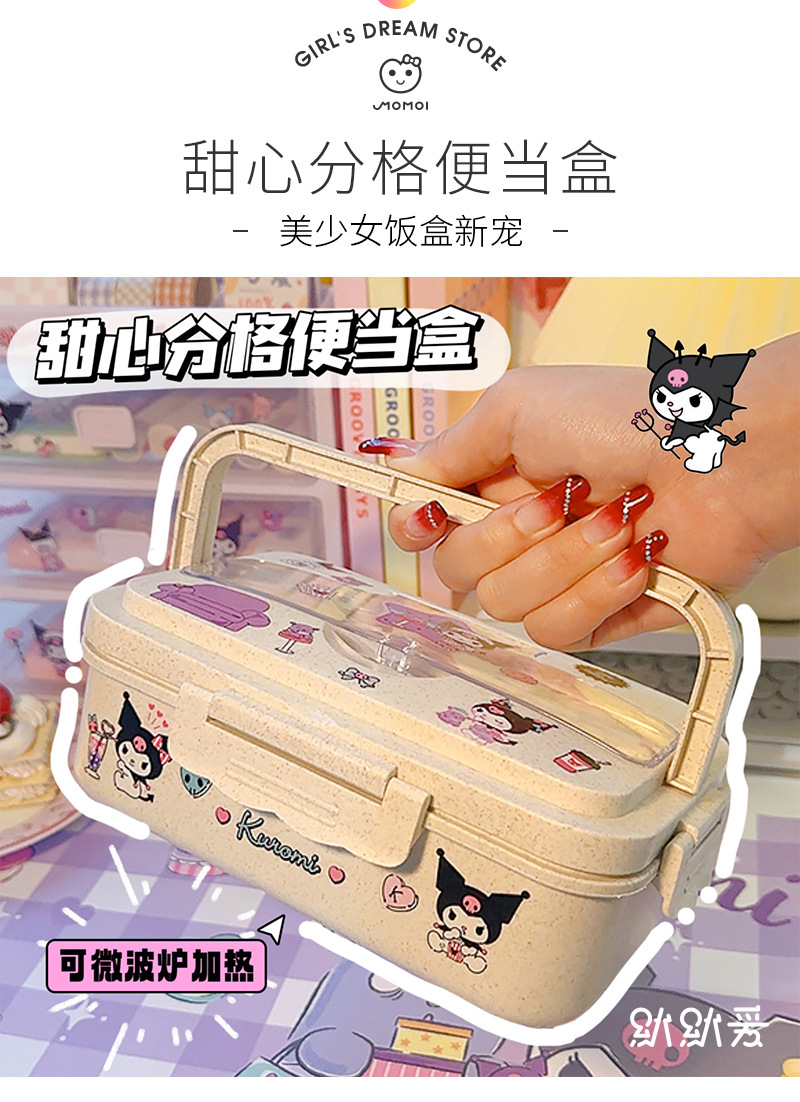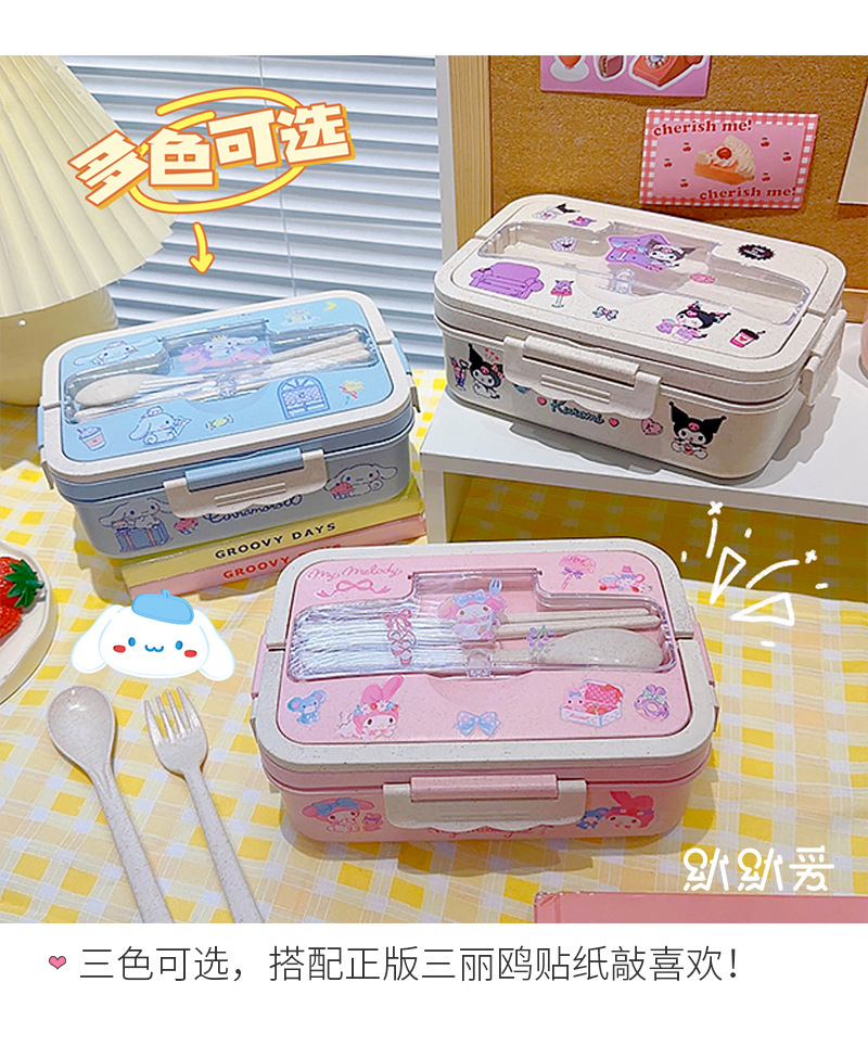 【可提式麦秸饭盒 】食堂打饭大容量学生餐盒 ,环保材质+分格设计不串味!可微波加热,送贴纸&餐具🎁让带饭更轻松✨