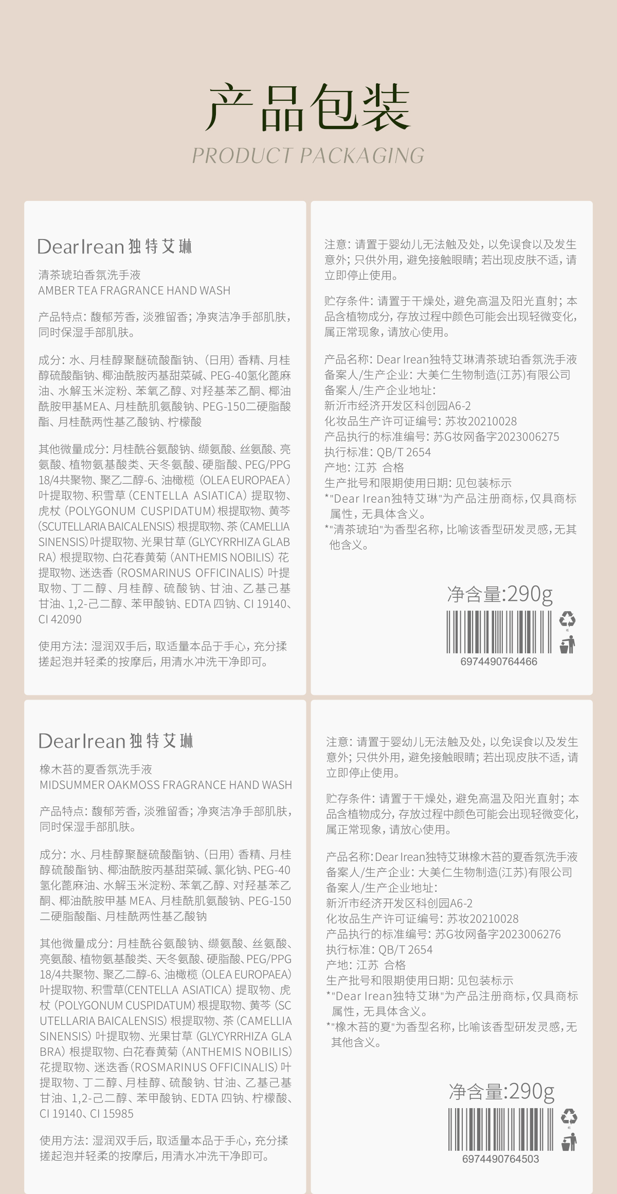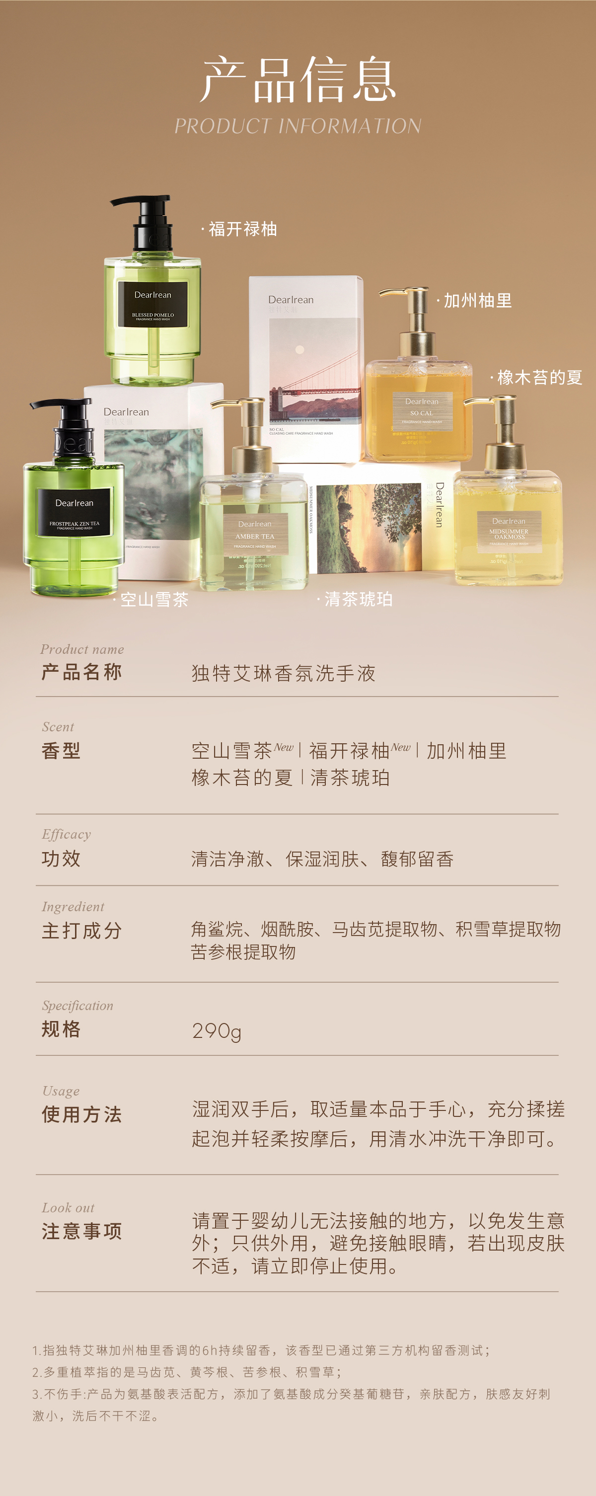 【侯明昊同款丨空山雪茶系列】DearIrean 独特艾琳空山雪茶系列香氛沐浴露350ml/护手霜35ml/洗手液290g(官方自营)