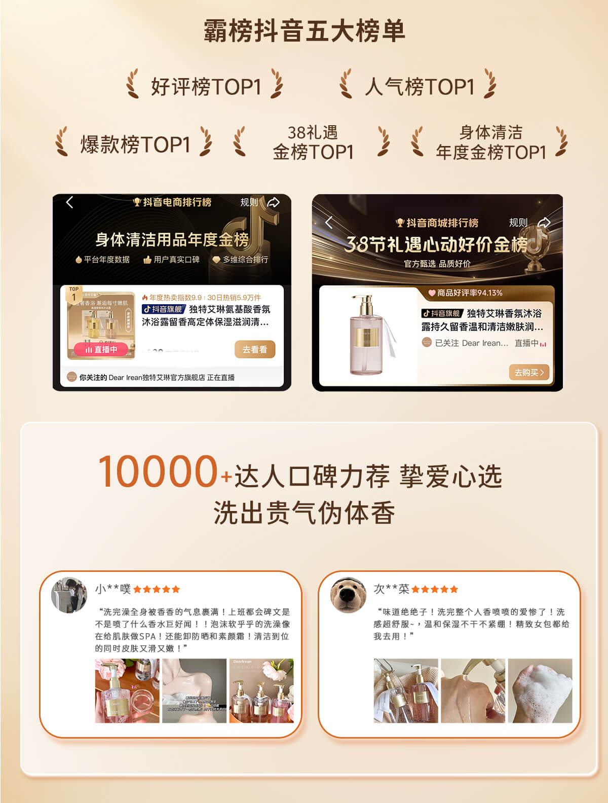 - DearIrean 独特艾琳,高定香氛生活品牌,拥有体•研究所,品牌致力于将高定香氛带入生活,同时倡导“以香之名,带给生活美好方式”的品牌理念,传递精致女性的爱、独立、自信。