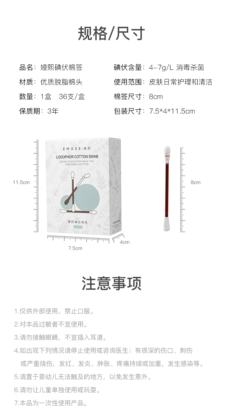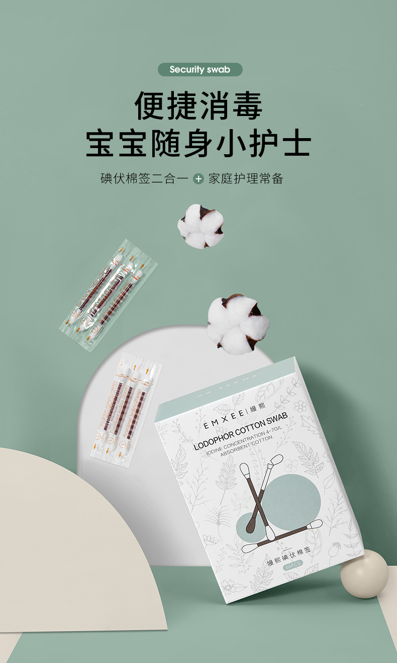 【新客福利】嫚熙一次性新生儿宝宝肚脐带消毒无菌婴儿碘酒棉棒碘伏棉签36支