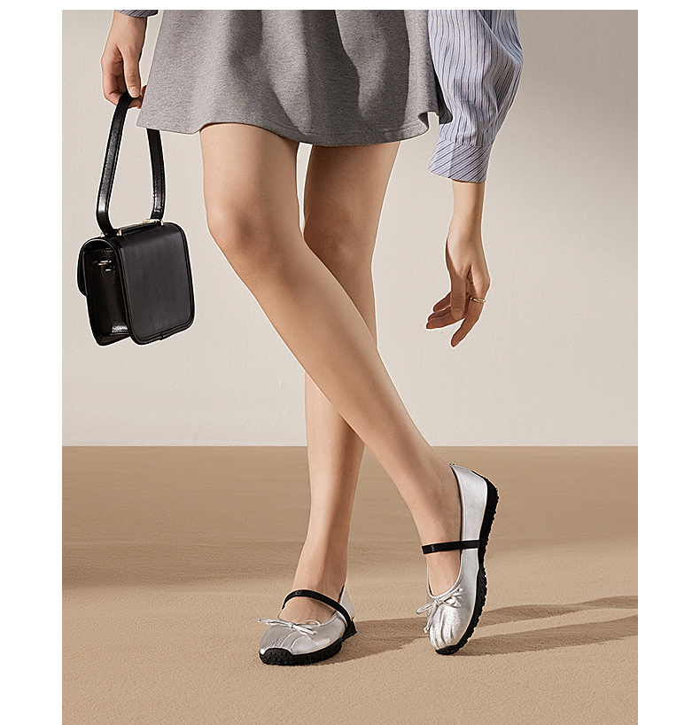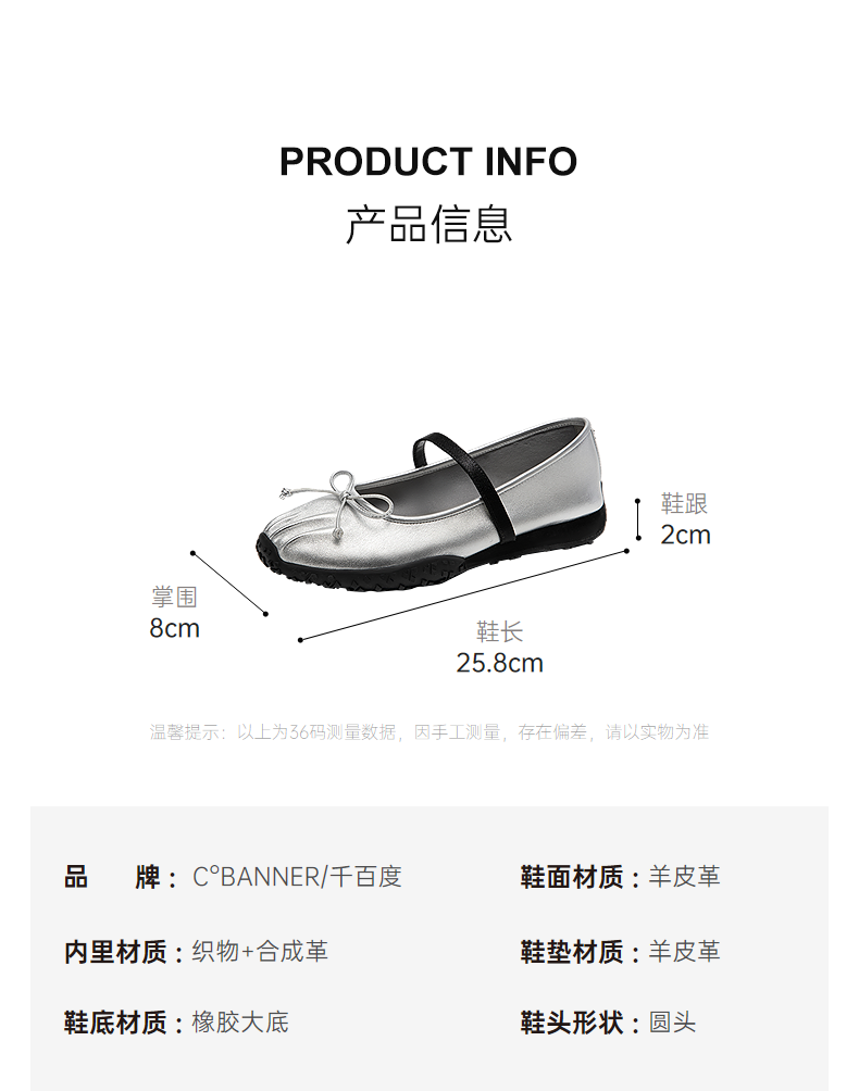 千百度蝴蝶结玛丽珍女鞋小香风芭蕾鞋晚晚平底单鞋A25185201