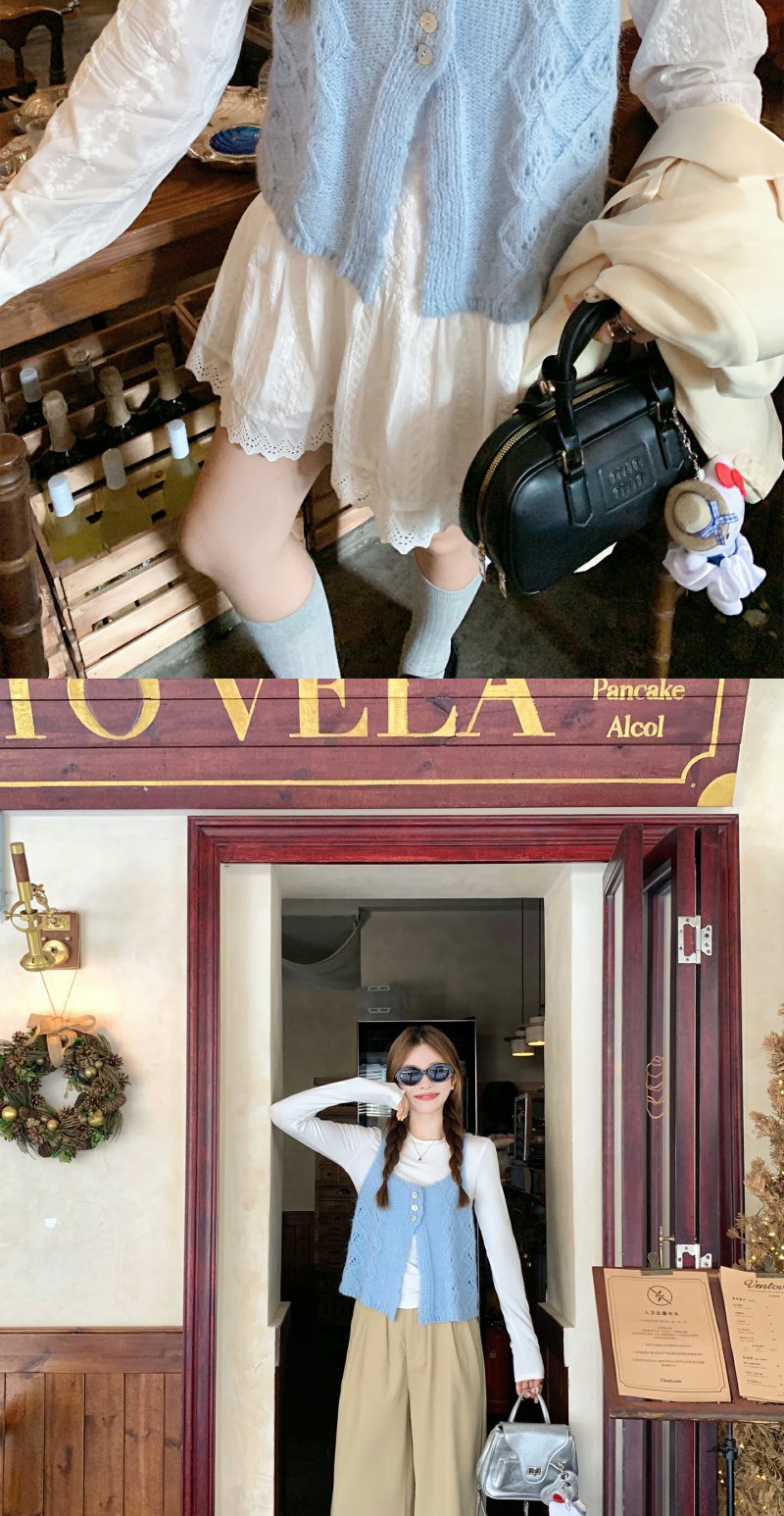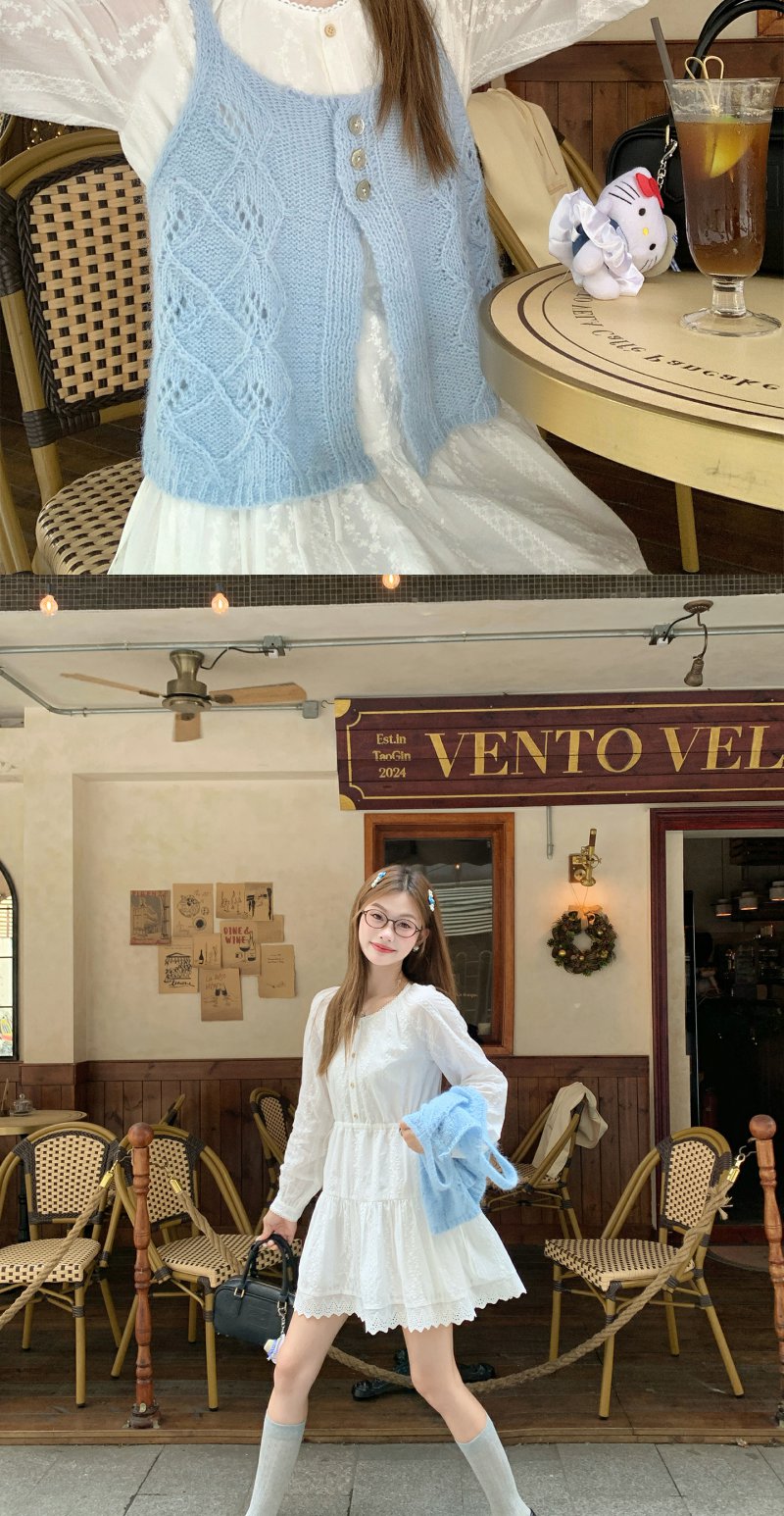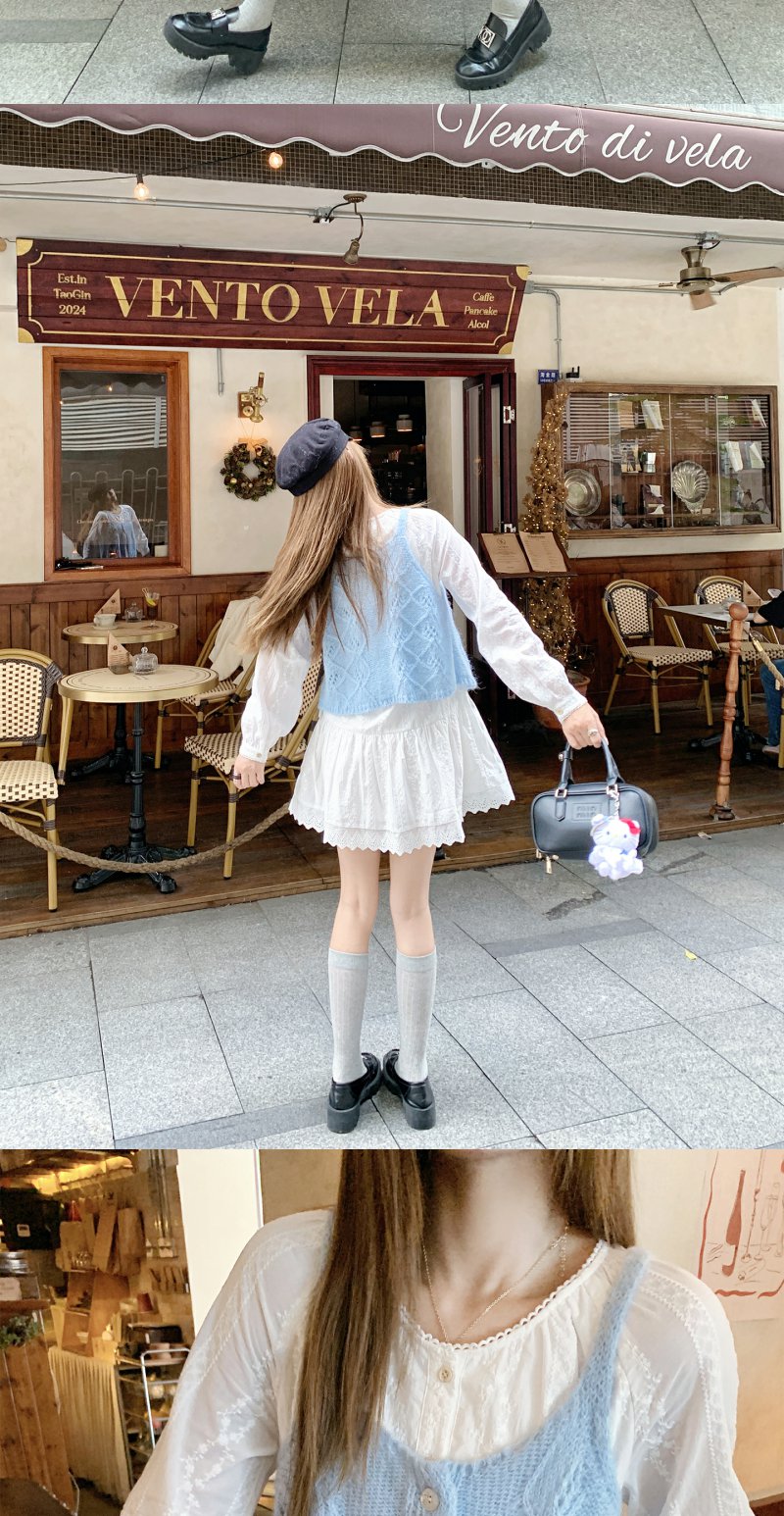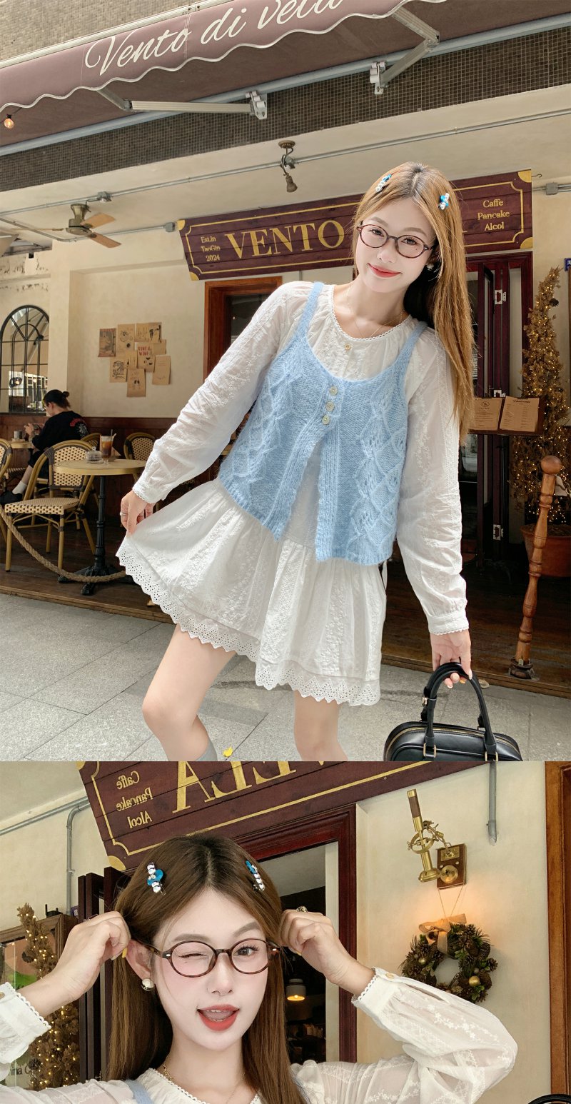 <曾小咸推荐>韩系叠穿蓝色毛织背心连衣裙套装!