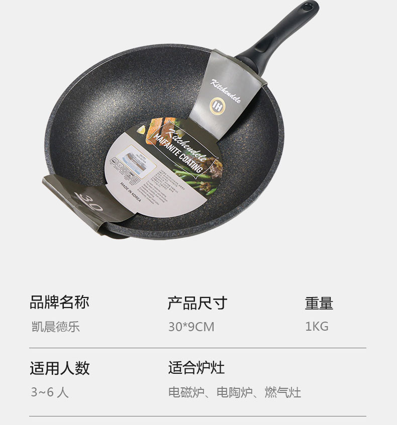 凯晨德乐 麦饭石炒锅30CM(新款)含礼盒和锅盖