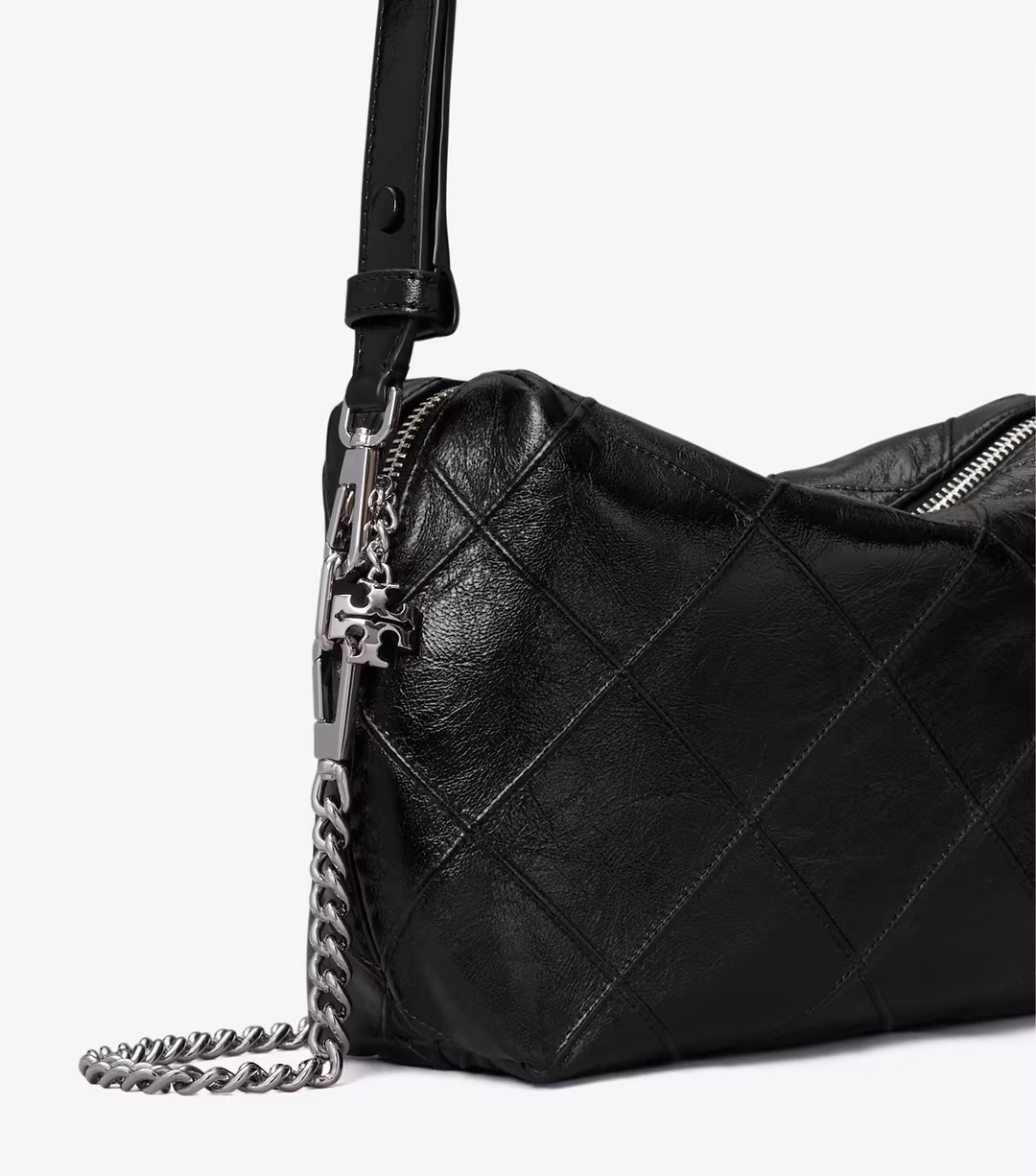 * 高度: 15cm; 长度: 26cm; 深度: 8.5cm • 面料;羊皮革 里料:织物 . 拉链扣; Logo 挂饰拉链头 可调节可拆卸肩背带, 垂直携带高度为27cm; 可拆卸链条 背带
