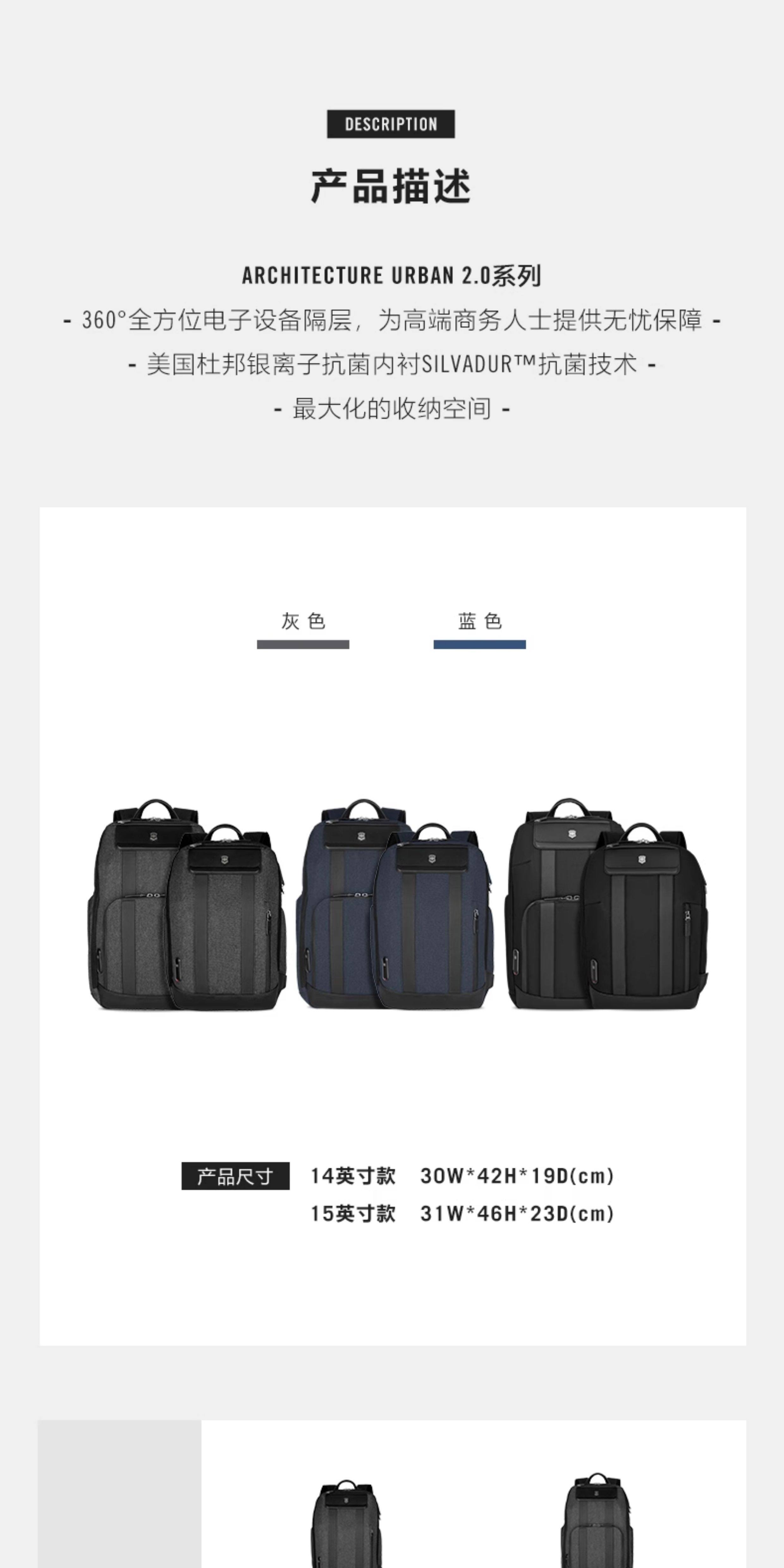 維氏軍刀 都市建筑师2 14英寸笔记本电脑都市双肩背包, 黑色 653352
