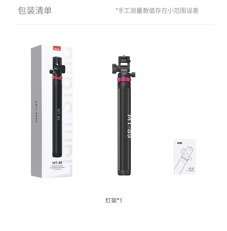 Ulanzi优篮子MT89冷靴快拆灯架闪光灯补光灯COB灯便携摄影灯架三脚架直播漫展拍照手机Vlog相机微单外拍支架