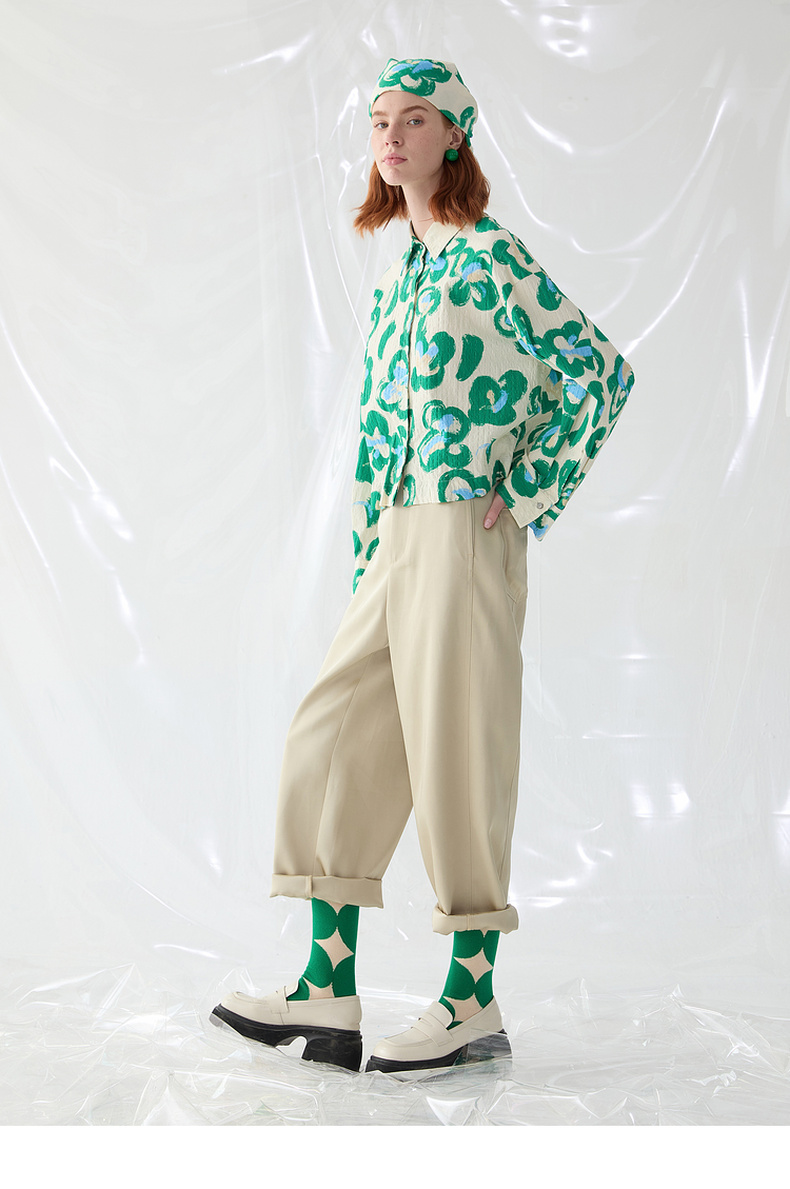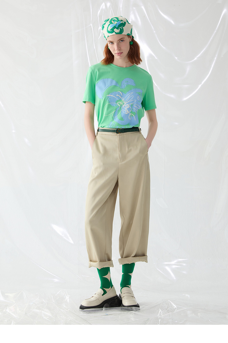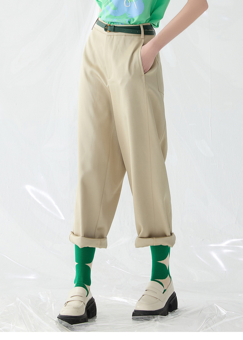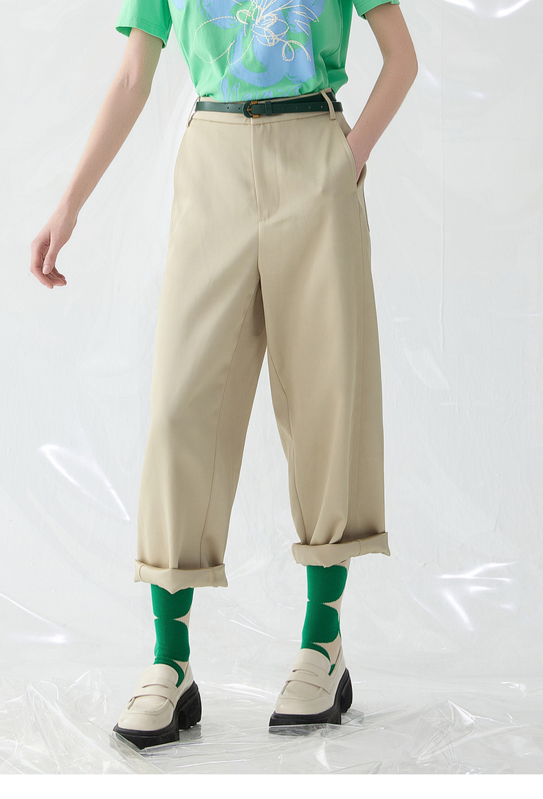 谜底直筒裤九分裤女2025春季新品光泽感百搭宽松休闲裤251MK0140