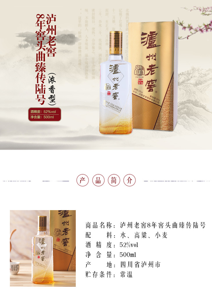 泸州老窖 8年窖头曲 臻传陆号 浓香型 52度 500ml*6