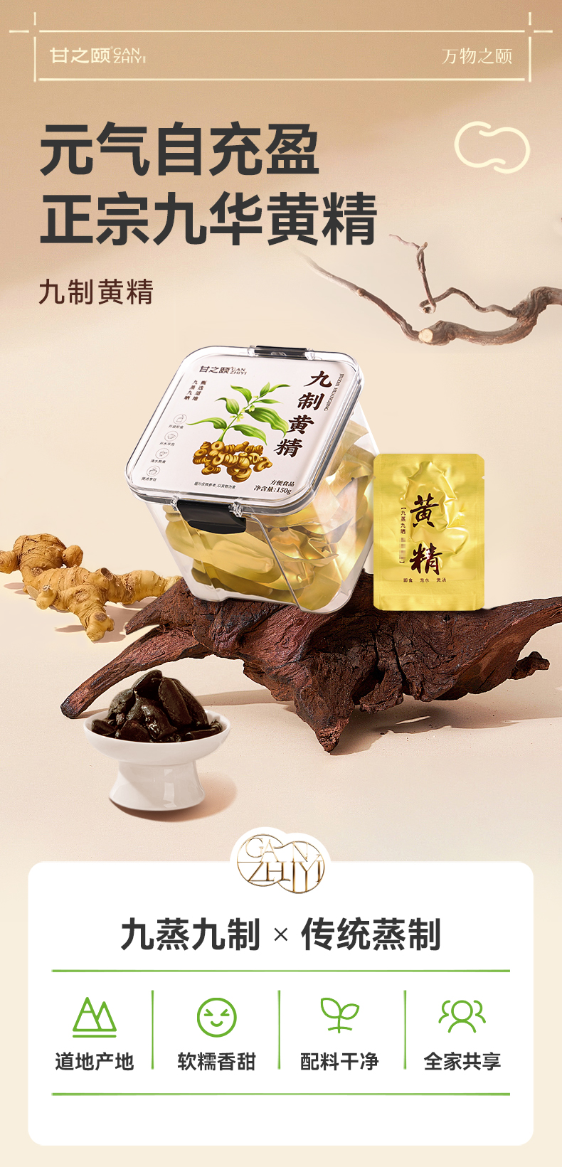 甘之颐 九制黄精 150g/盒 九蒸九晒 即食泡水