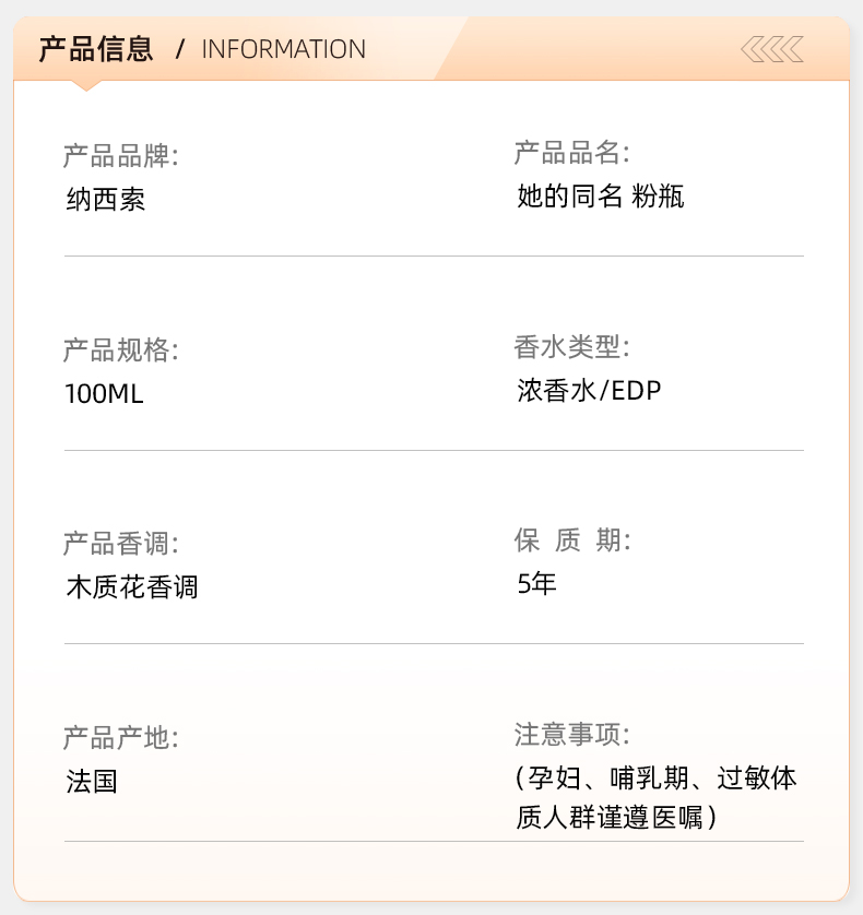 【保税仓】纳西索·罗德里格斯她的同名女士EDP100ml粉瓶【简装】无盖