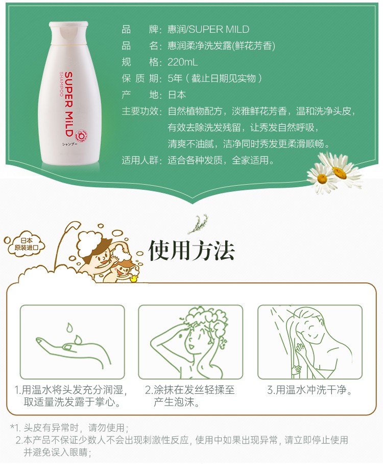 惠润 鲜花香型柔净洗发水旅行装 220ml/瓶(新包装)