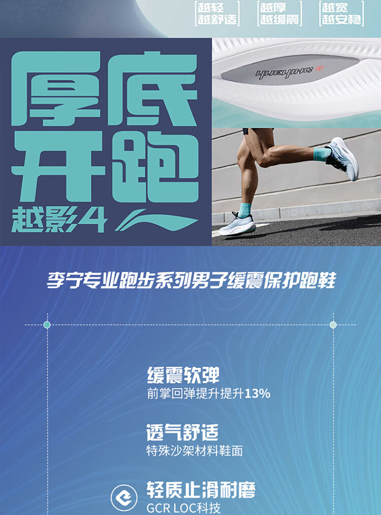 李宁 越影4 男女款 轻便舒适透气缓震跑步运动鞋