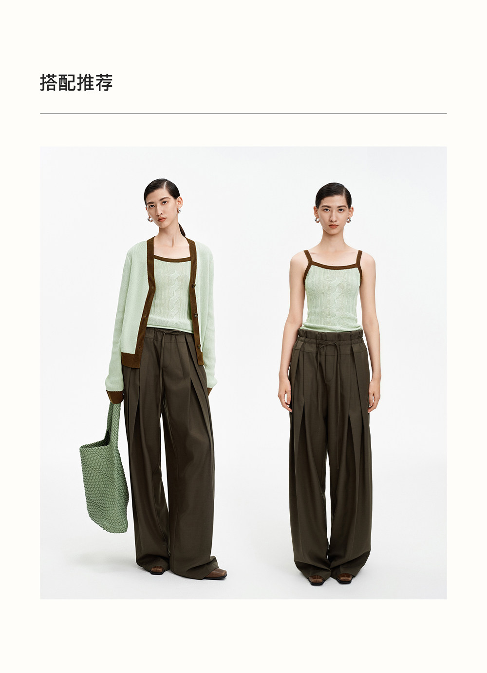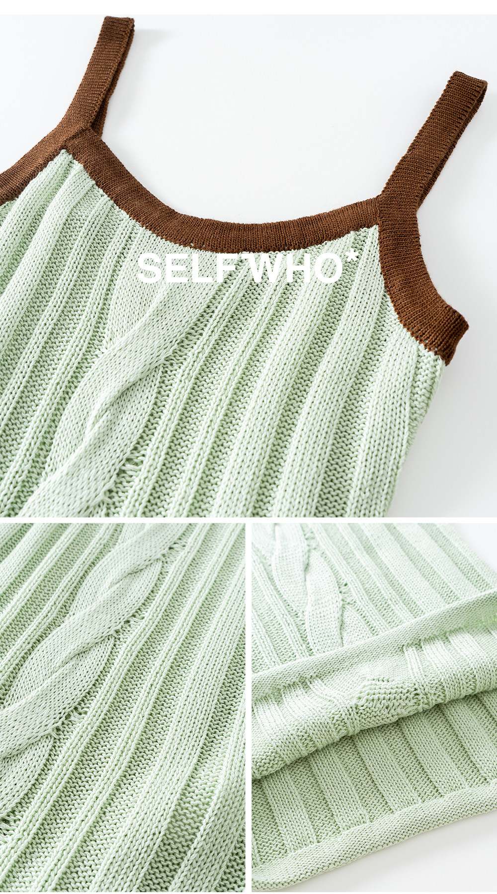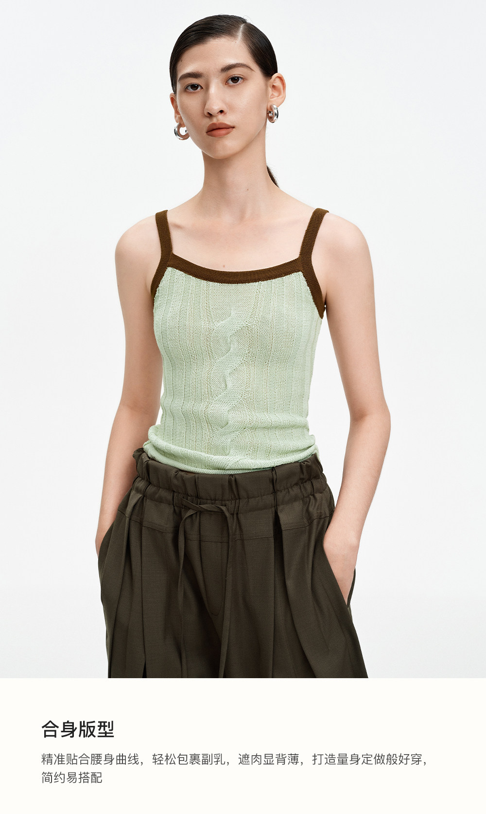 SELFWHO天丝亚麻混纺复古绿色吊带背心女2026春新款高弹显瘦上衣