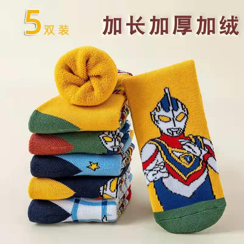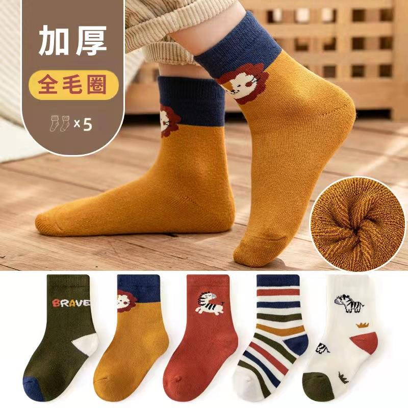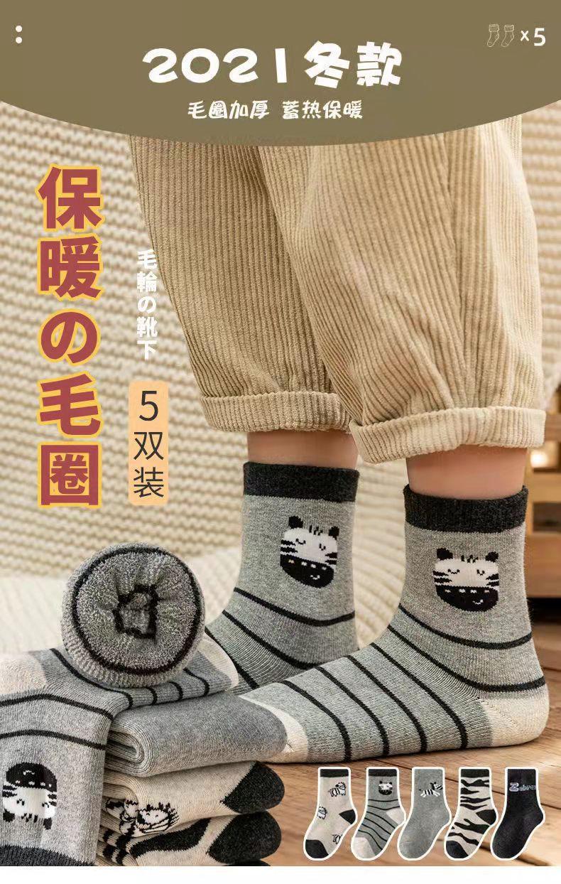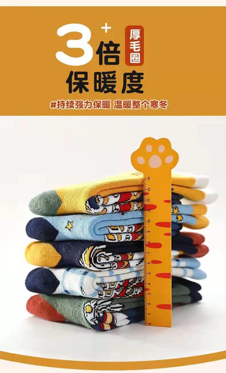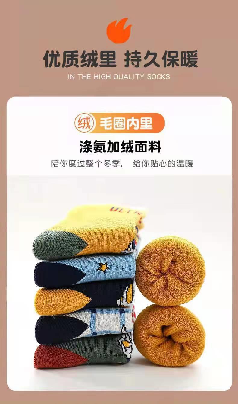 年货节!【仅34.9五双·儿童加厚冬季毛圈袜 】男女童卡通恐龙加绒加厚宝宝袜 保暖毛巾袜