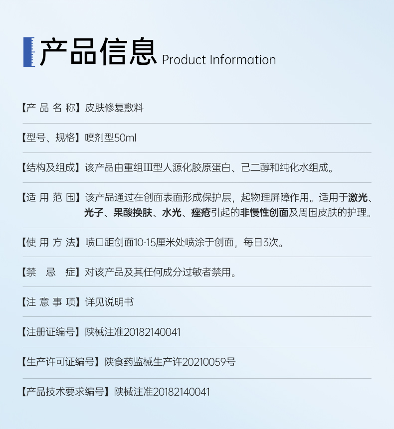 悦丝汀胶原蛋白修复敷料术后皮肤创面护理医用敷料喷剂械字号50ml