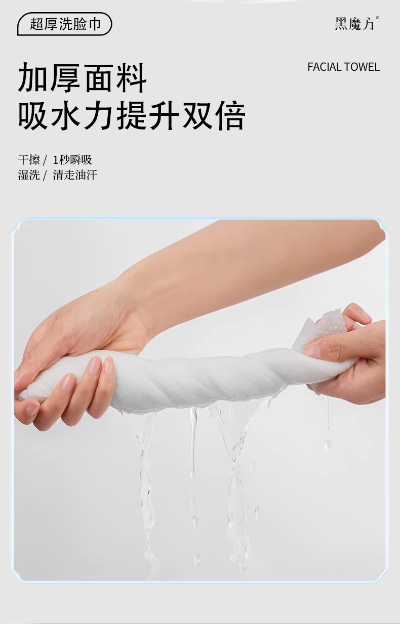 【黑魔方洁面柔巾】双面纹路柔软亲肤 吸水迅速不粘腻