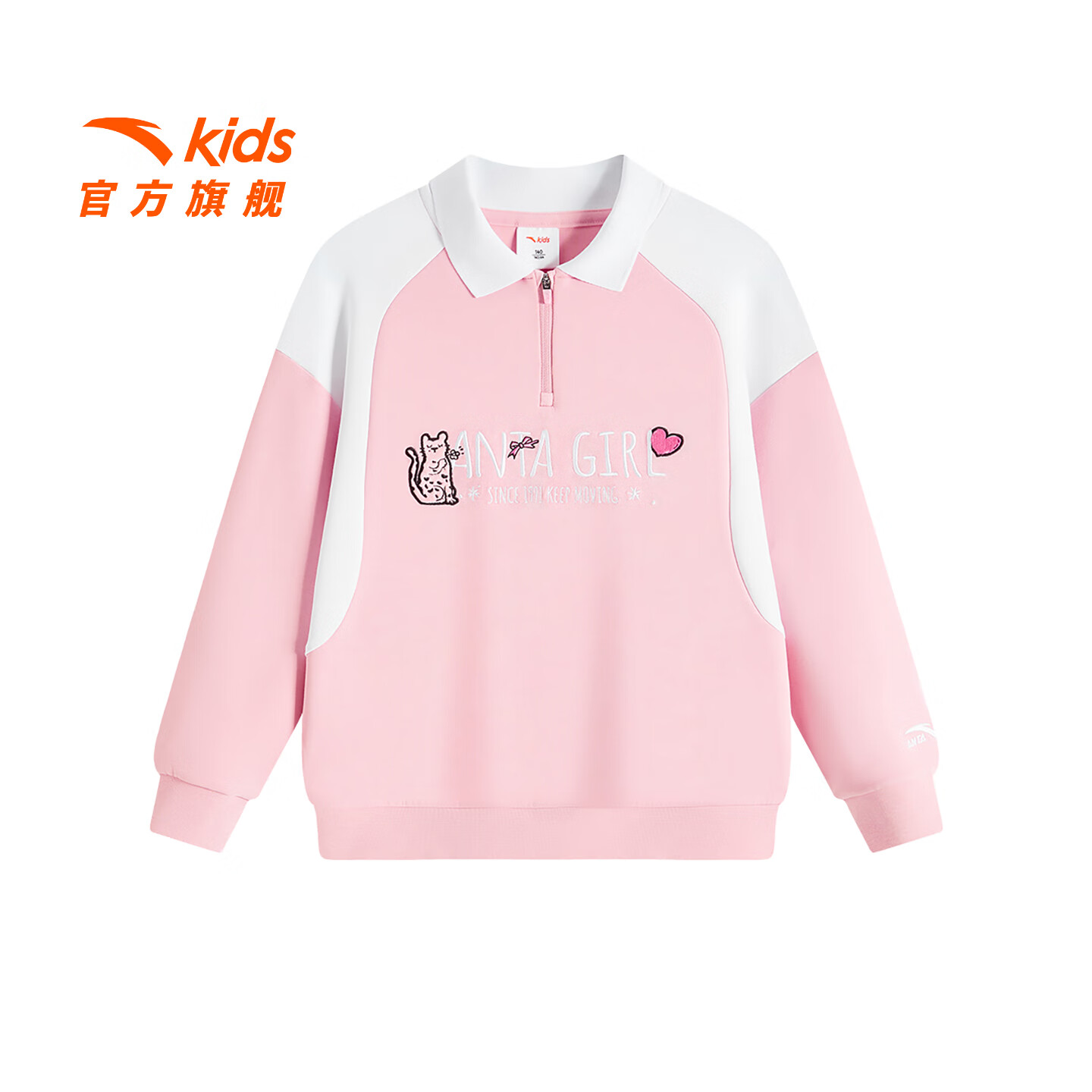安踏儿童卫衣女大童装25秋季优可丝潮流喵喵针织套头衫362538704