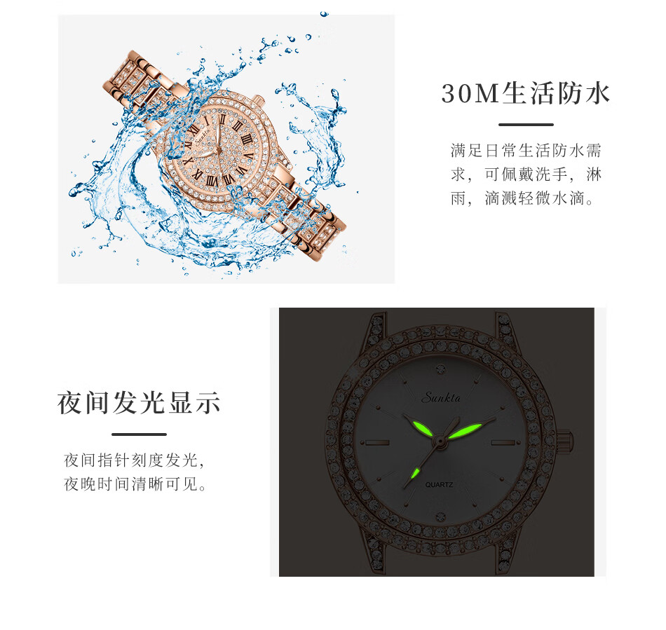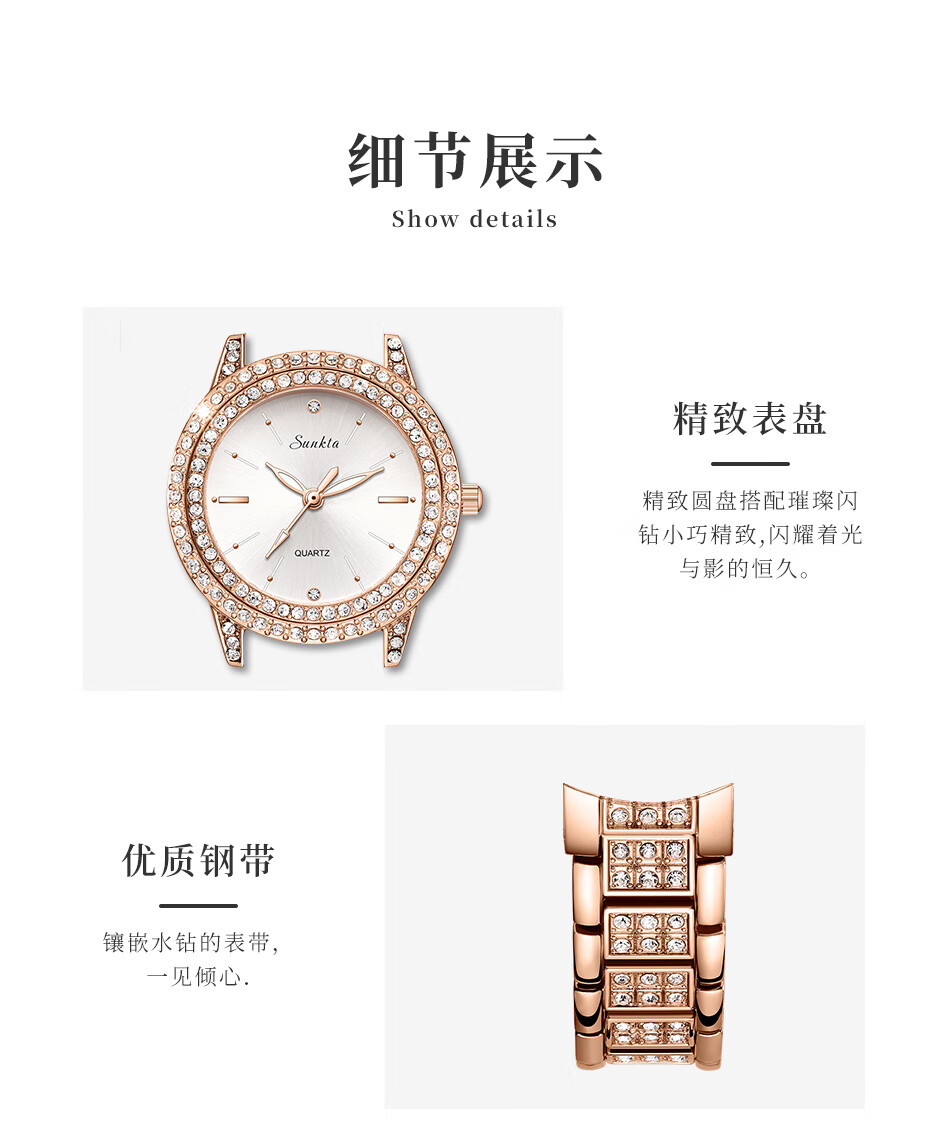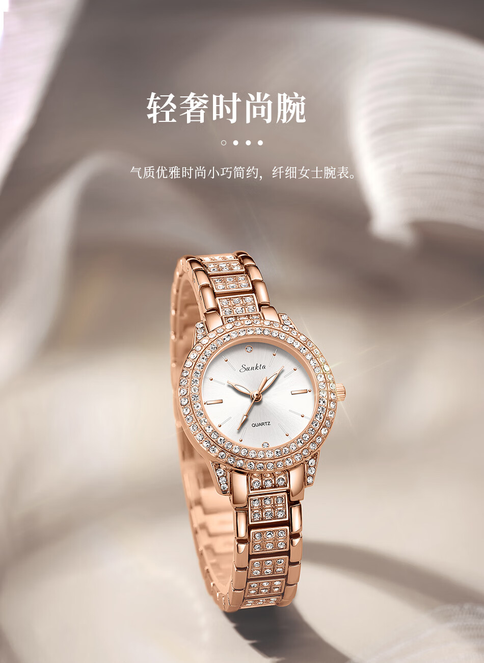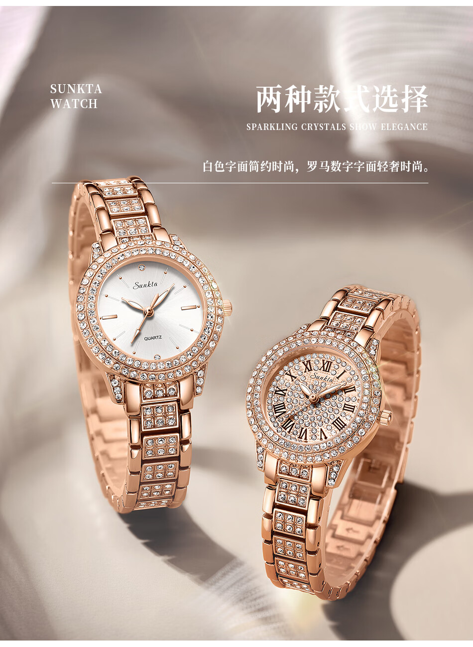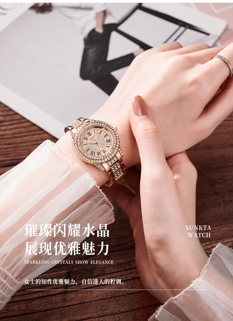 SUNKTA 复古轻奢经典满钻石英表ST6703