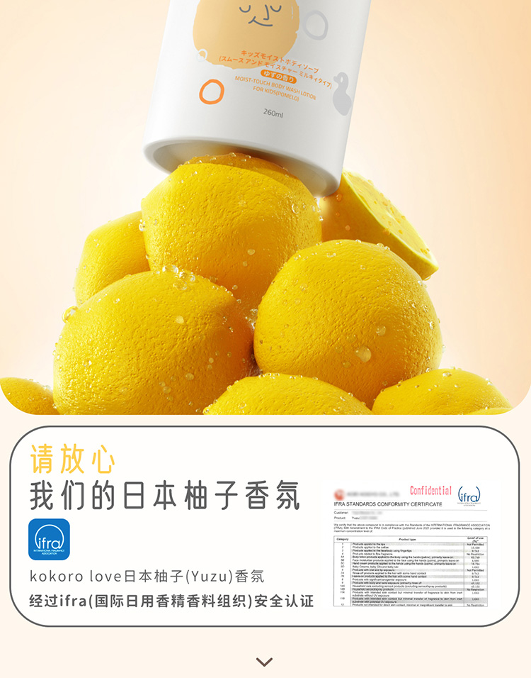 kokoro love 初葆 儿童水润沐浴乳液 柚香 260ml