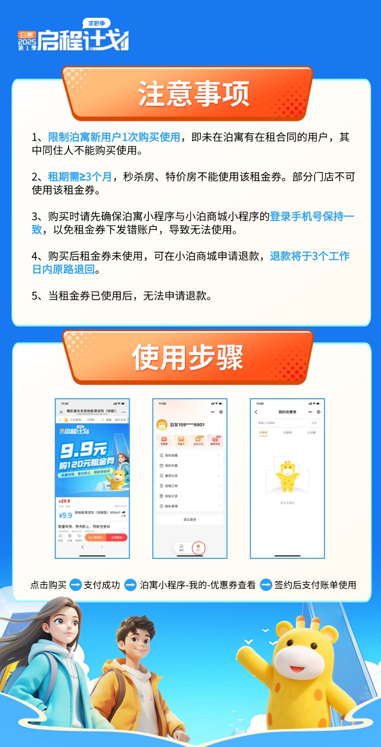 付款后,120元租金券直接下发至该手机号下的泊寓账户,可至“泊寓小程序-我的-优惠券”查看。