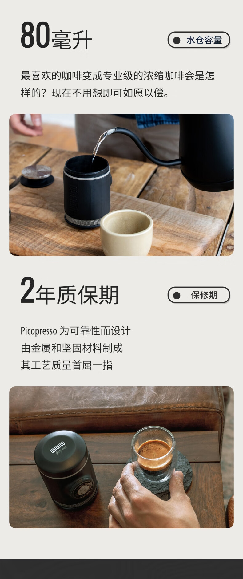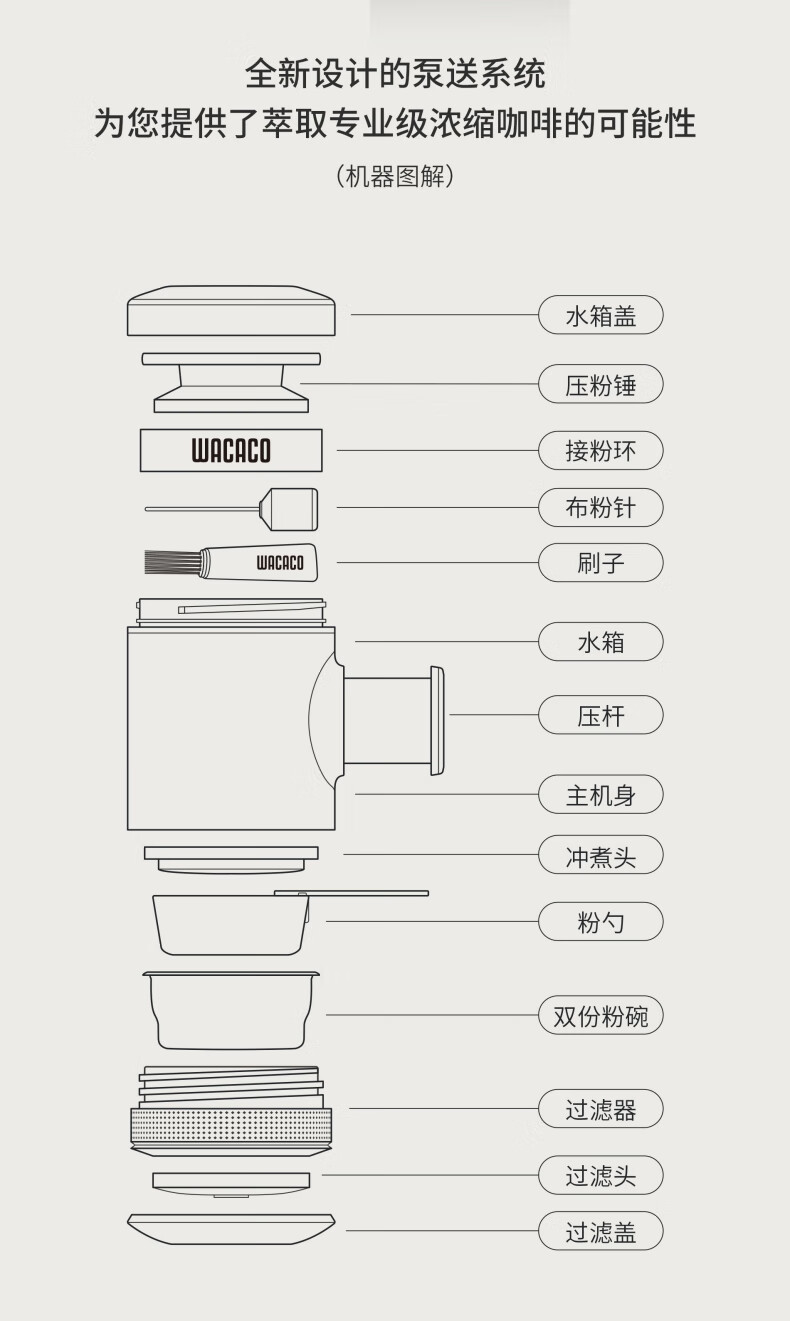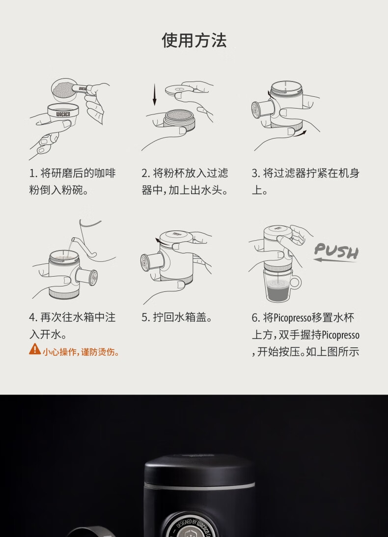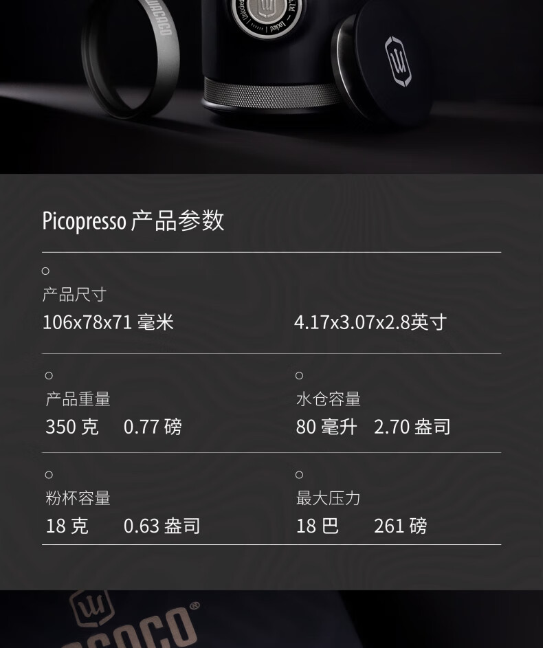 WACACO Picopresso高阶便携式咖啡机手压意式浓缩户外礼品露营家用粉版 Pico咖啡机