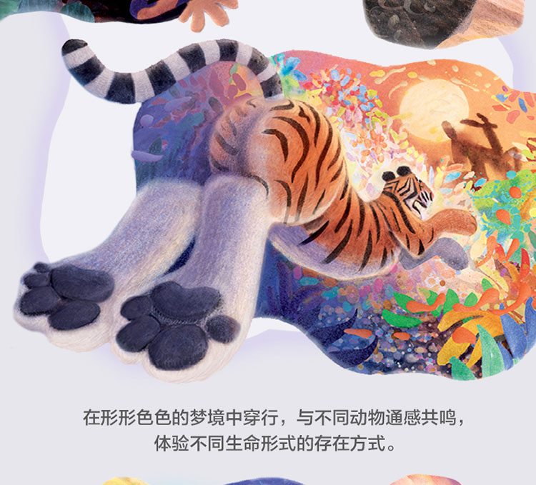 欢迎来到野性而自由的梦之乐园。在这里,你是一只睡眼惺忪的蝾螈、一只欢快舞动的章鱼、一只飞驰的游隼……甚至是一只悄然潜行的老虎或一个顽皮的小孩儿。翻开书页,你将在一个个梦境中穿行,沉浸体验不同动物的感官奇境;在无尽的梦之宇宙里怡然自适,既甜甜酣睡,又神智清明……