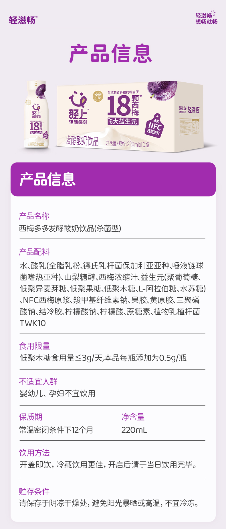 严选 | 轻上西梅多多发酵酸奶饮品常温酸奶早餐饮品220ml*10