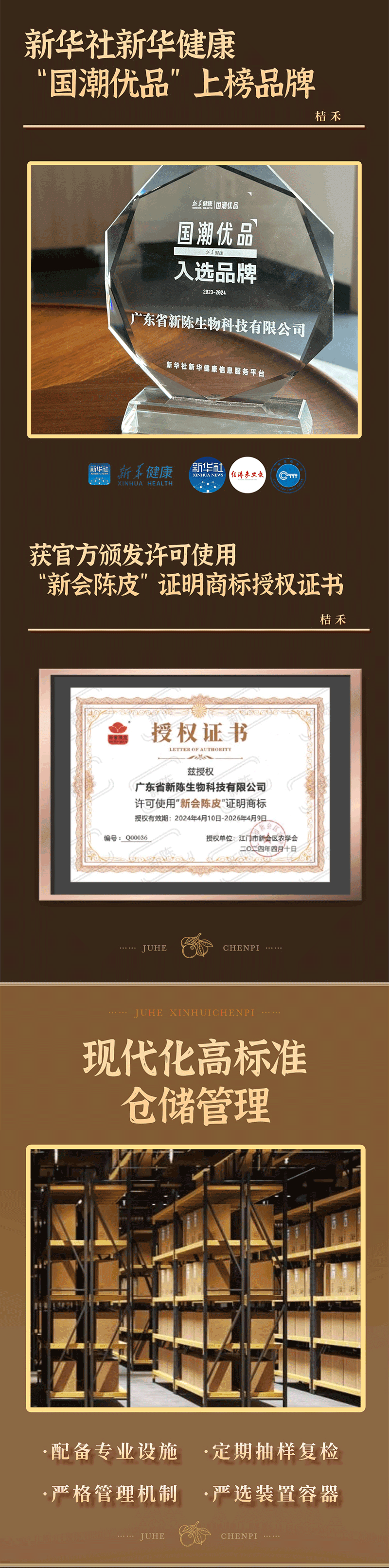 【桔禾新会陈皮(八年陈)】八年自然陈化,醇香浓厚!甘甜滋润,回味悠长,匠心工艺造就陈香四溢!