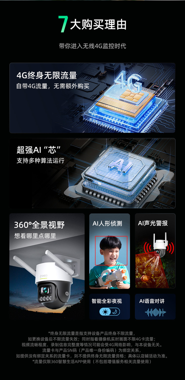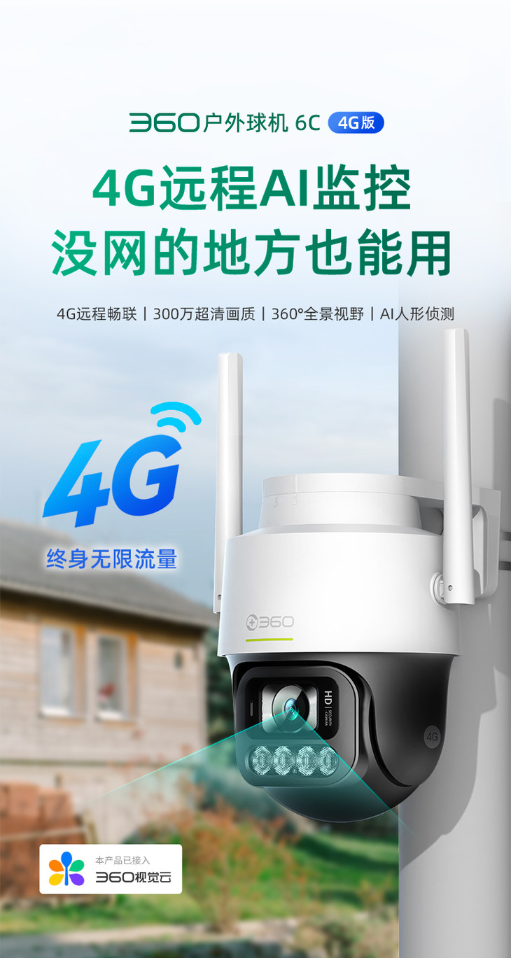 【专属】360户外球机6C 4G版 300万超清画质 360全景视野 AI人形侦测 AI声光报警