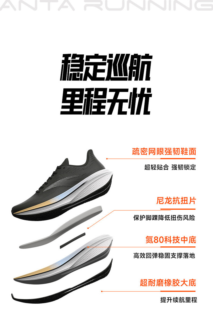 安踏二区心率80丨缓震氮科技女跑鞋冬季新款耐磨运动鞋 122615555