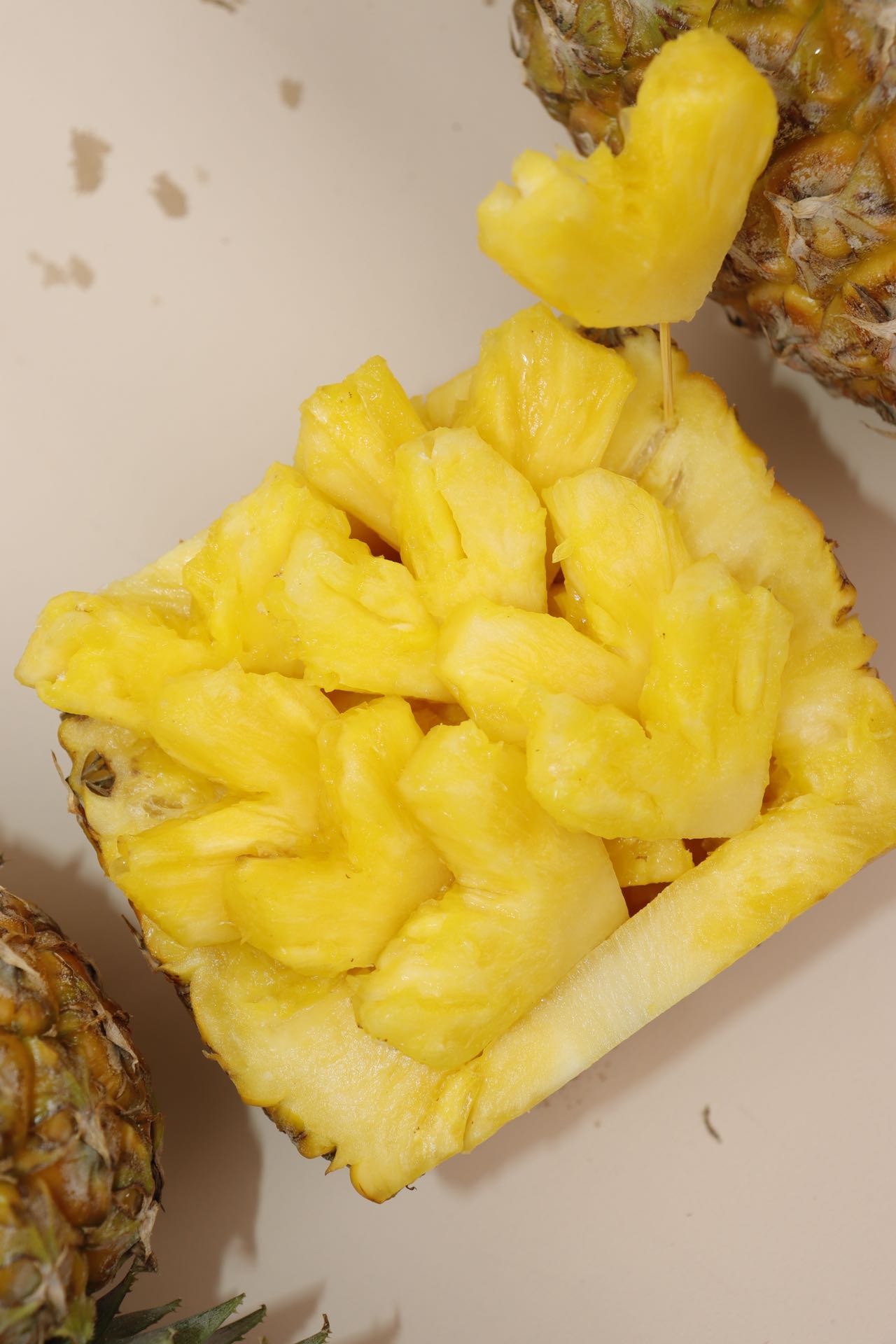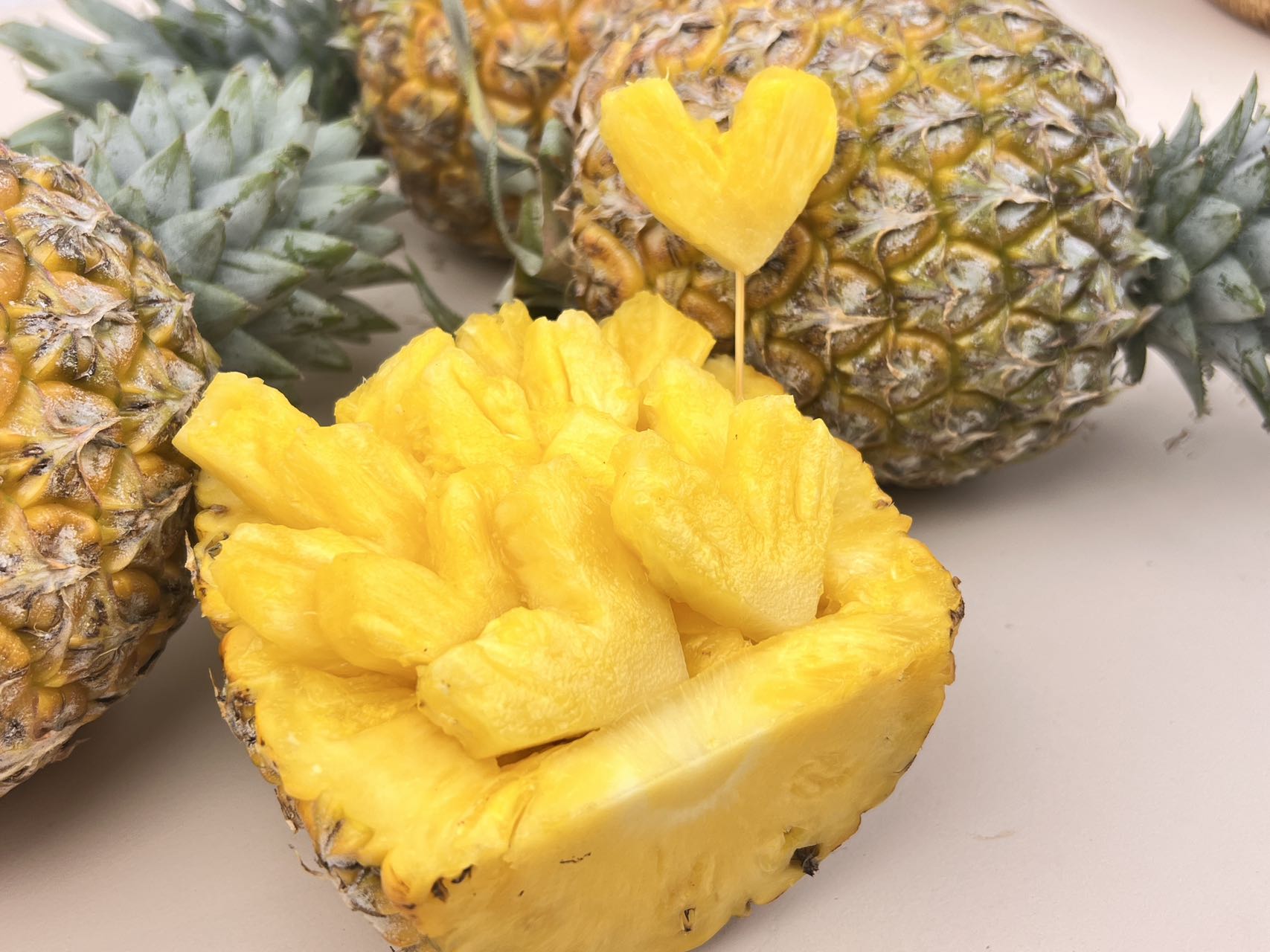 我们承诺绝不会在凤梨根部涂抹防腐剂而避免发霉