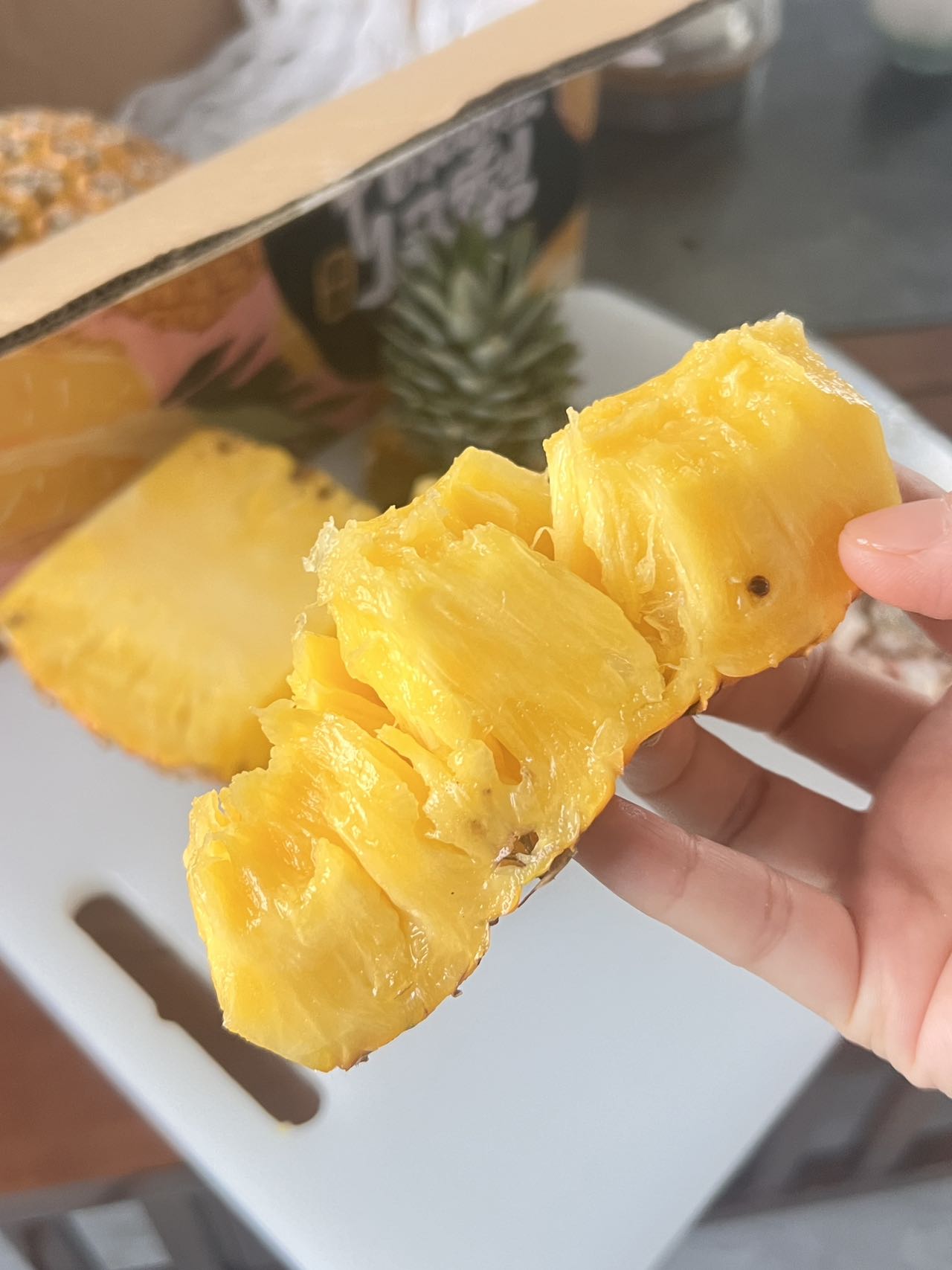 一切开浓郁清甜的凤梨+芒果香的热带水果味