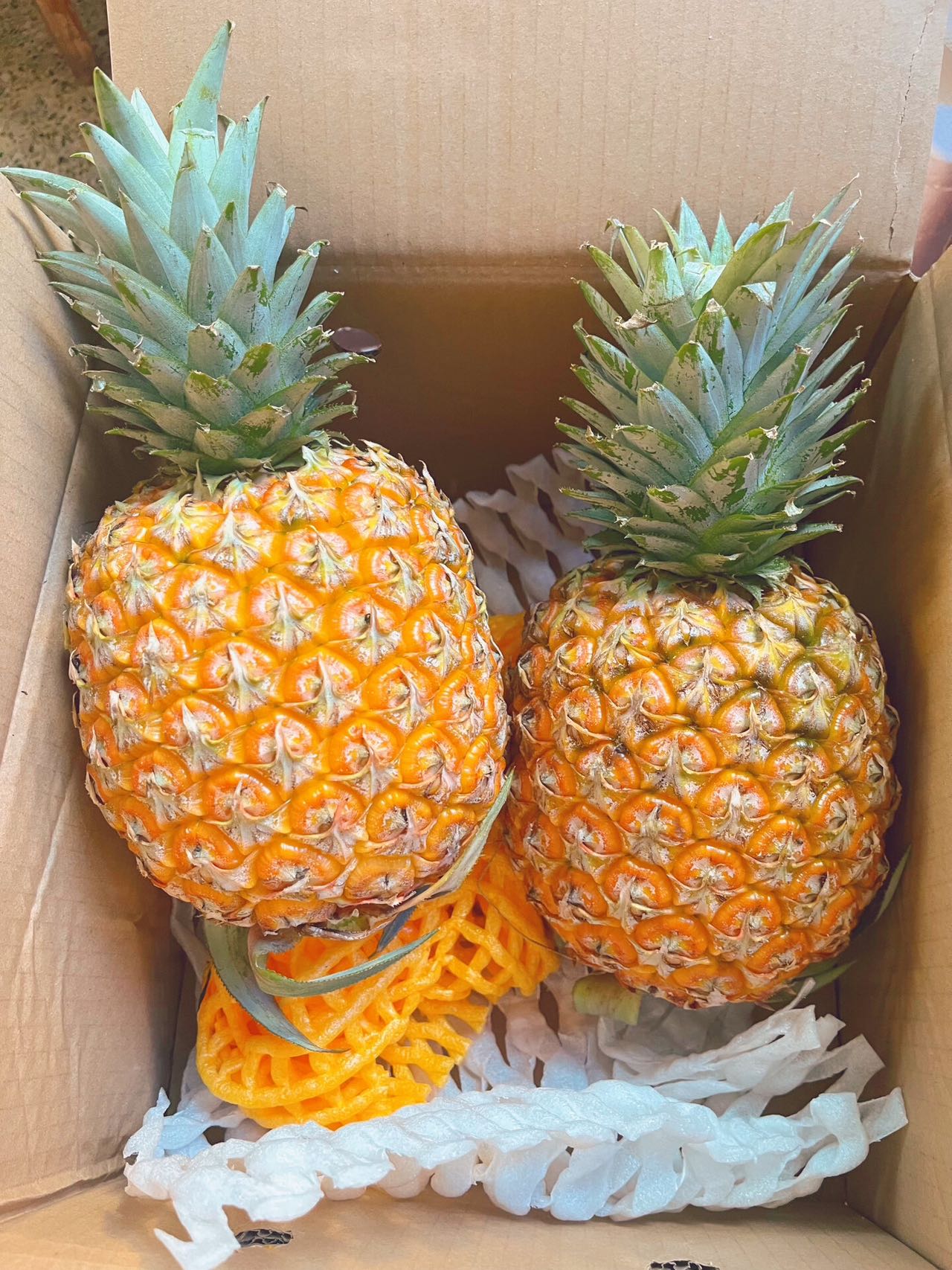 ④ 一年一熟,树上熟成熟度发货,采用网套+精美纸箱,风味独特,为每一个凤梨保驾护航,美味送到家