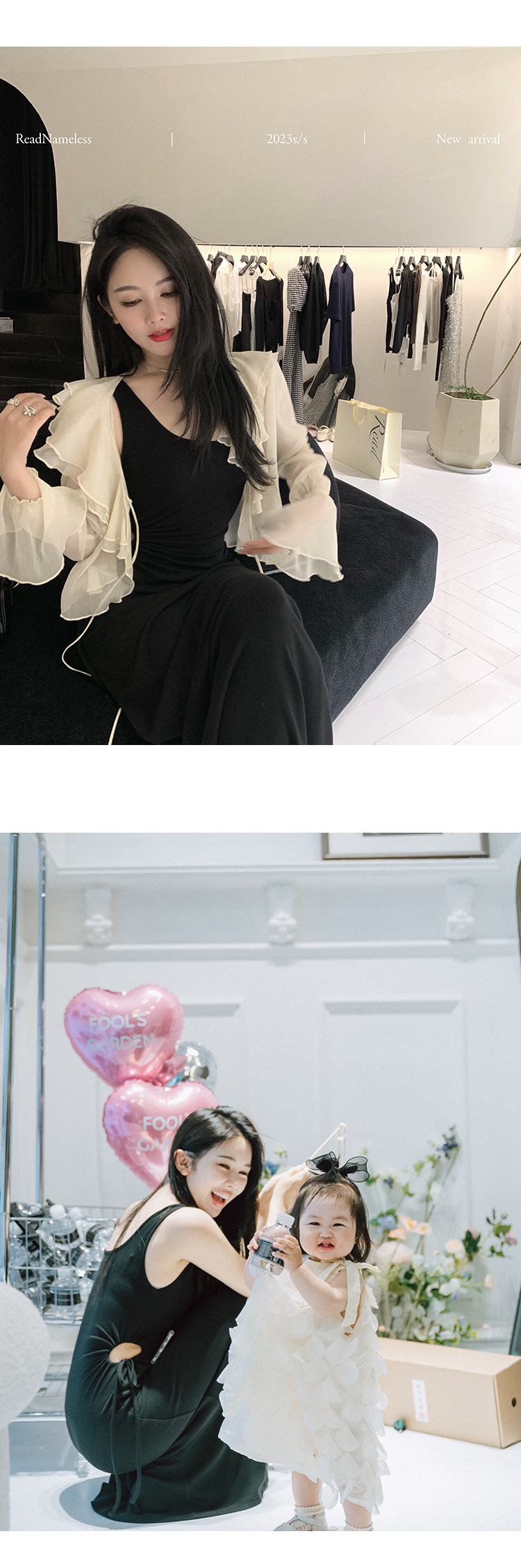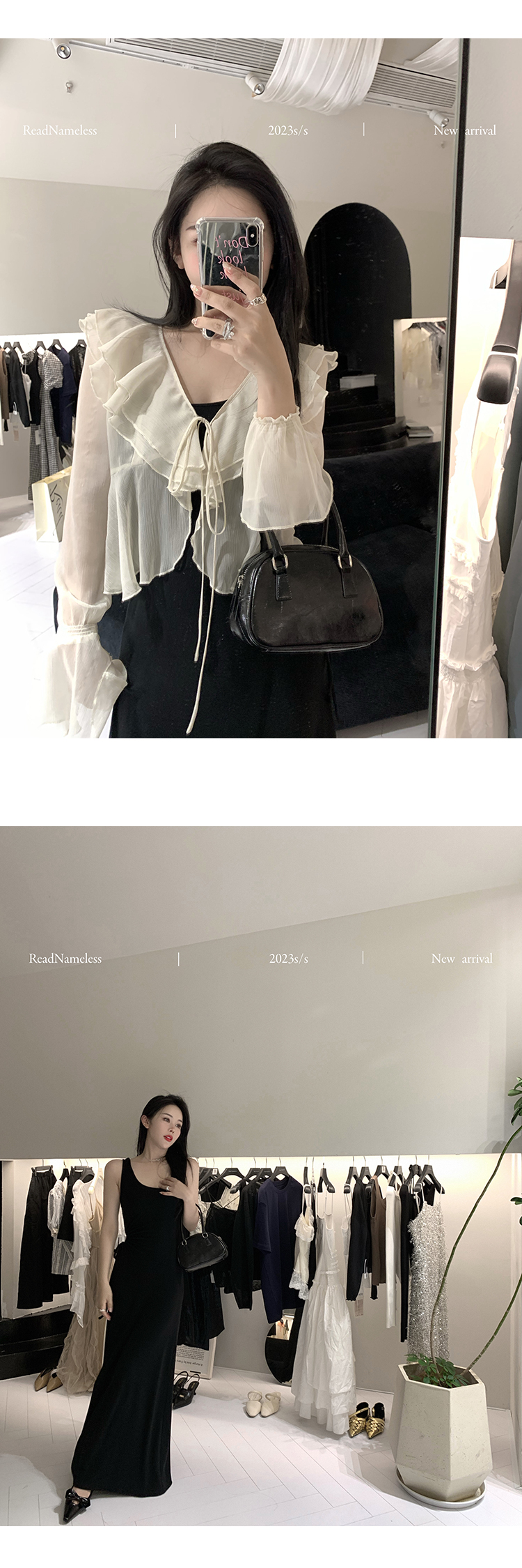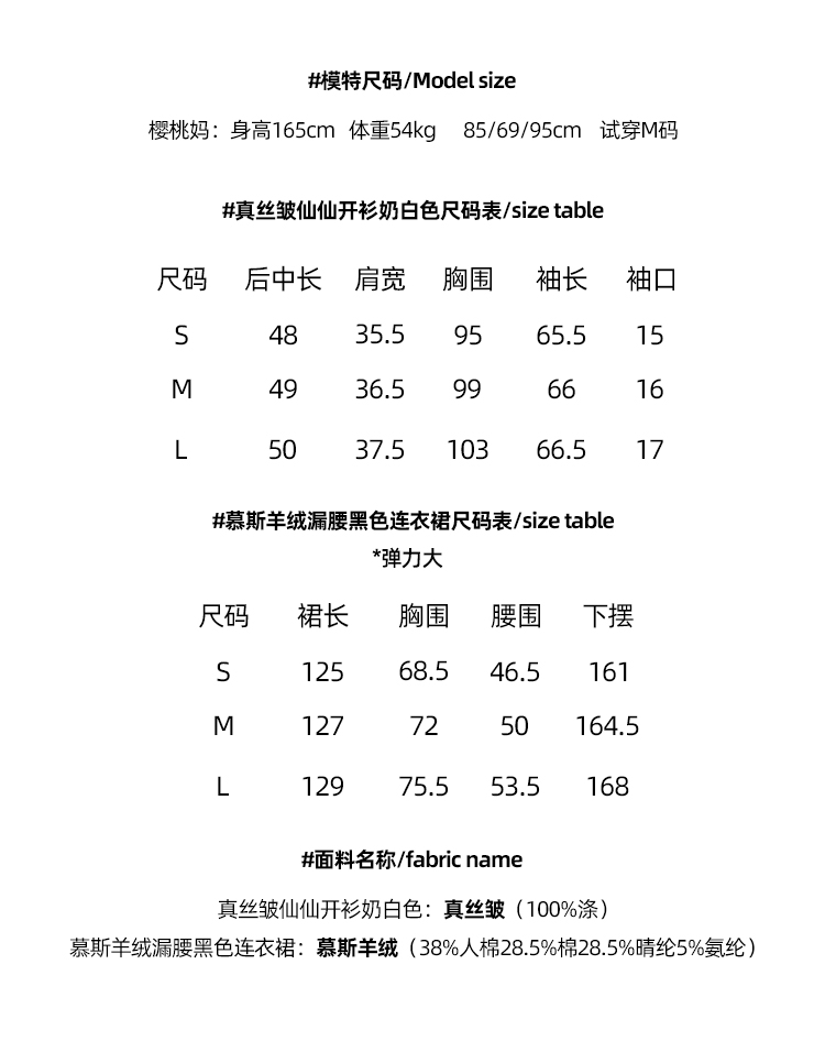 Read Nameless /慕斯羊绒漏腰黑色连衣裙+真丝皱仙仙开衫奶白色