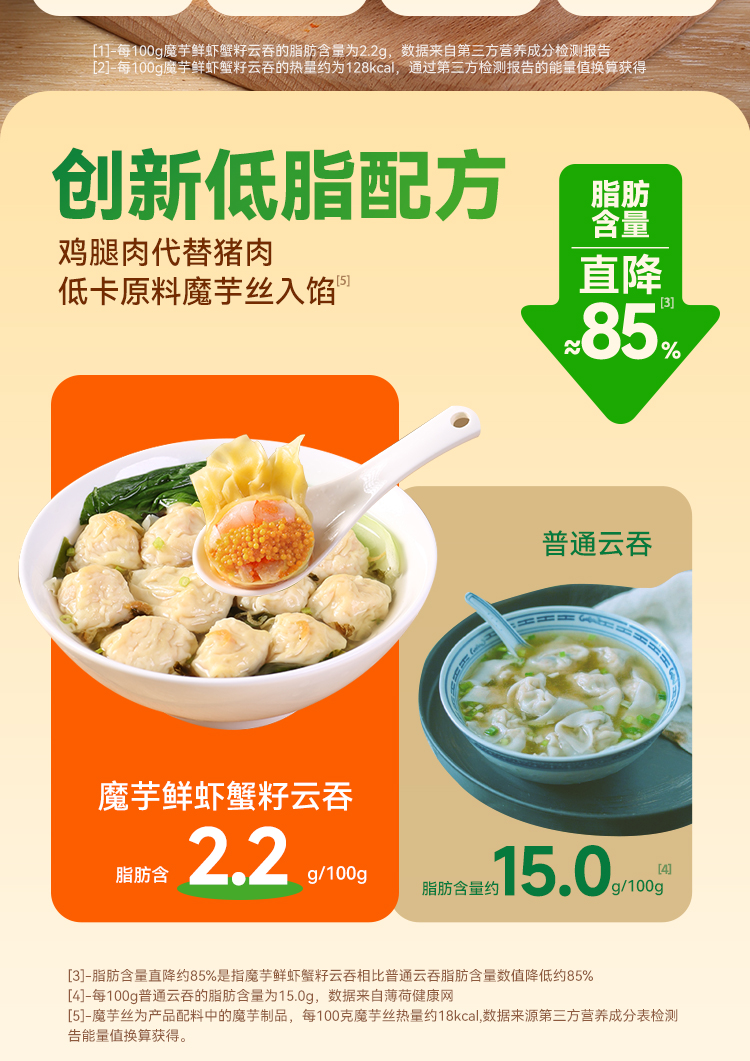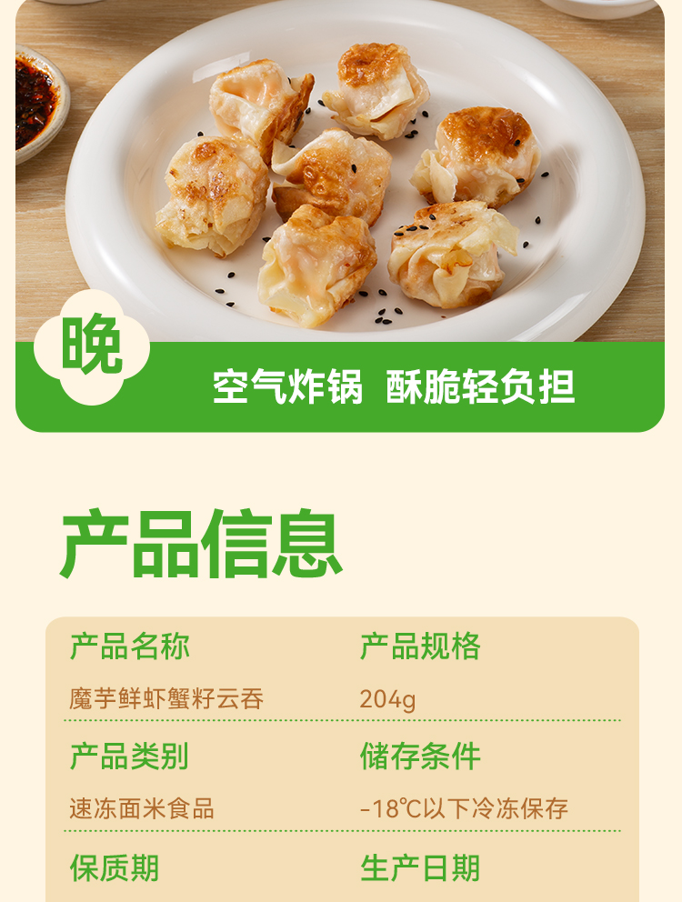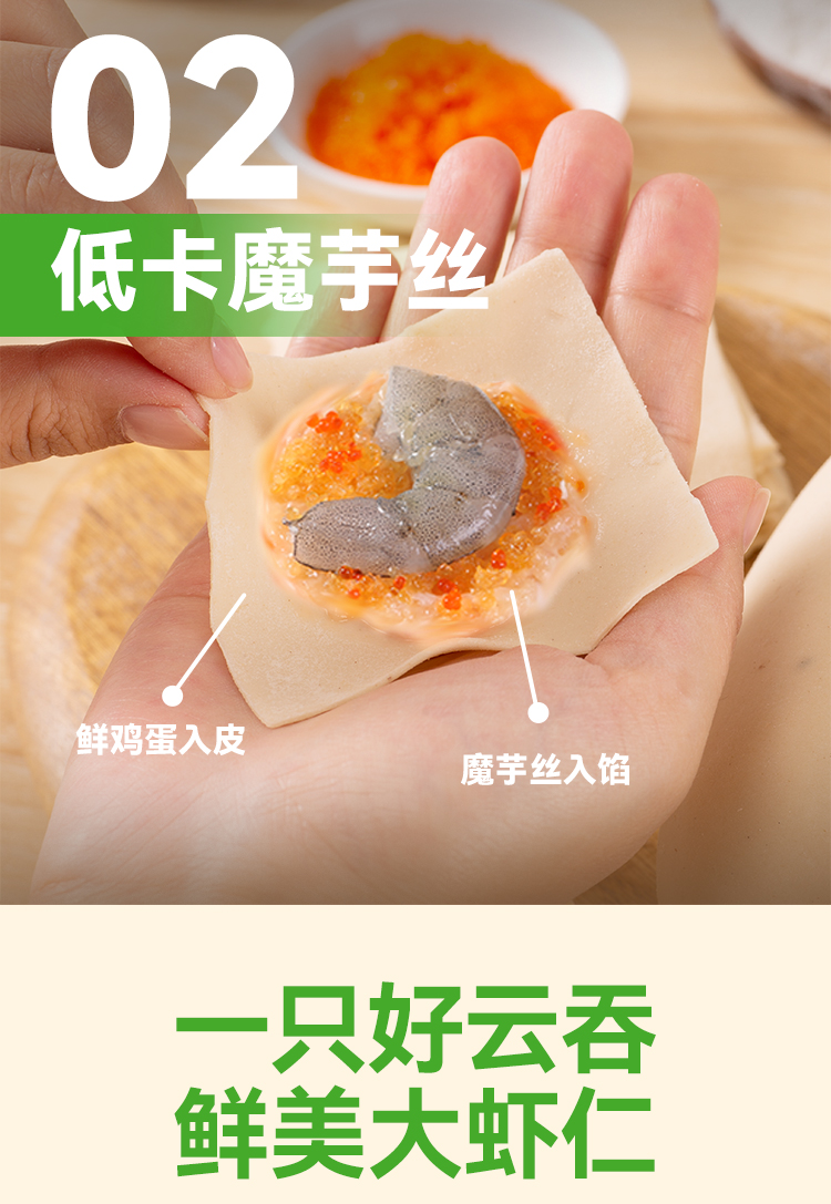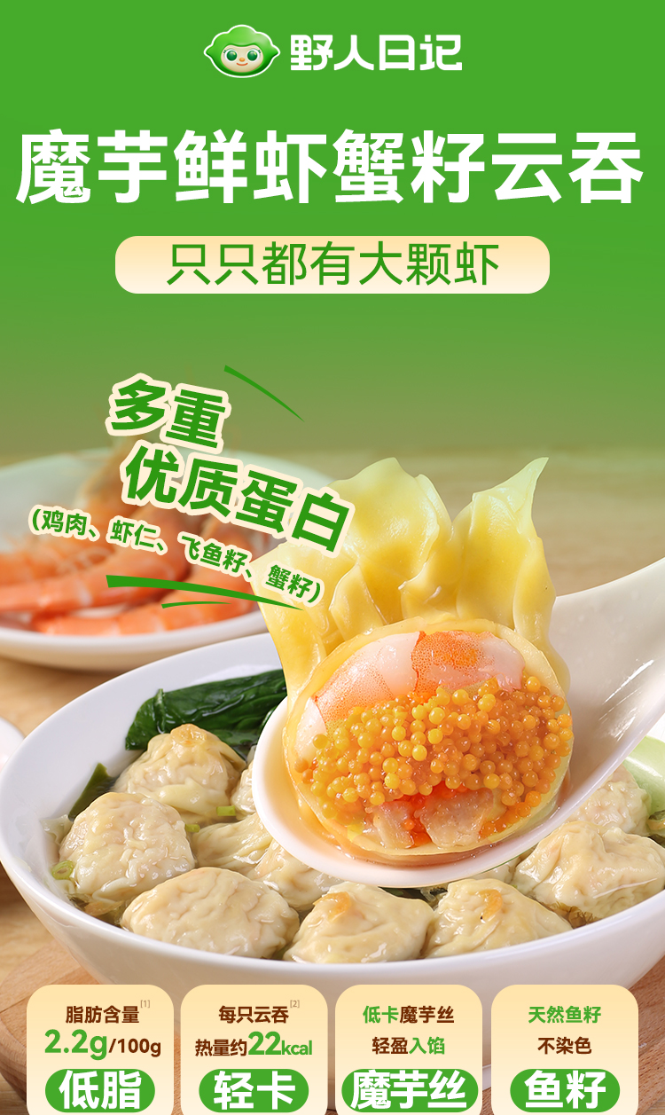 【野人日记魔芋鲜虾蟹籽云吞】低脂轻卡 多重优质蛋白只只都有大颗虾 204g/盒