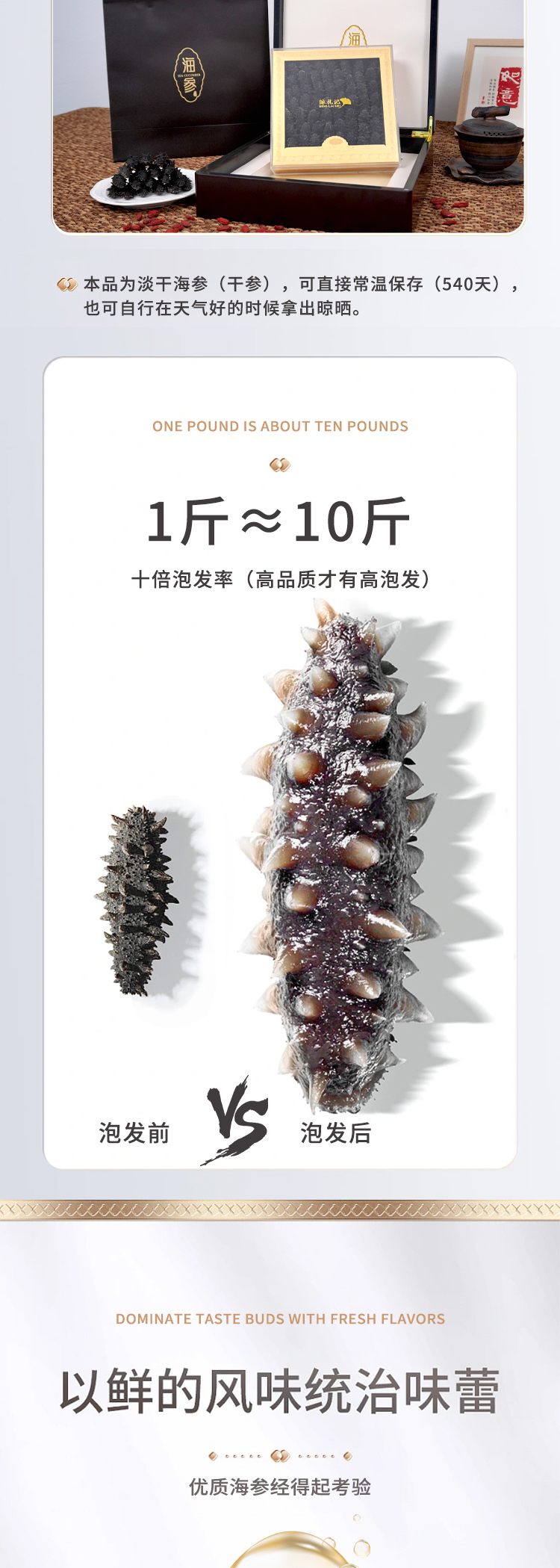 【大连原产地直发 淡干辽刺参礼盒】大连深海底播6-7年,六排刺淡干辽刺参,10倍泡发!