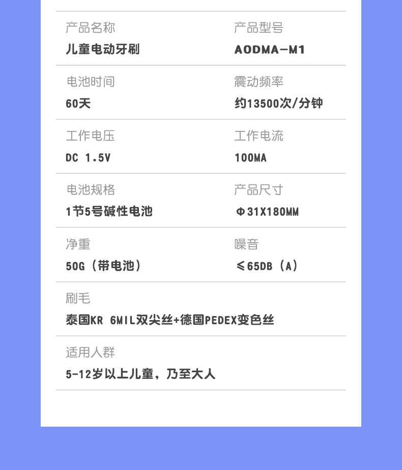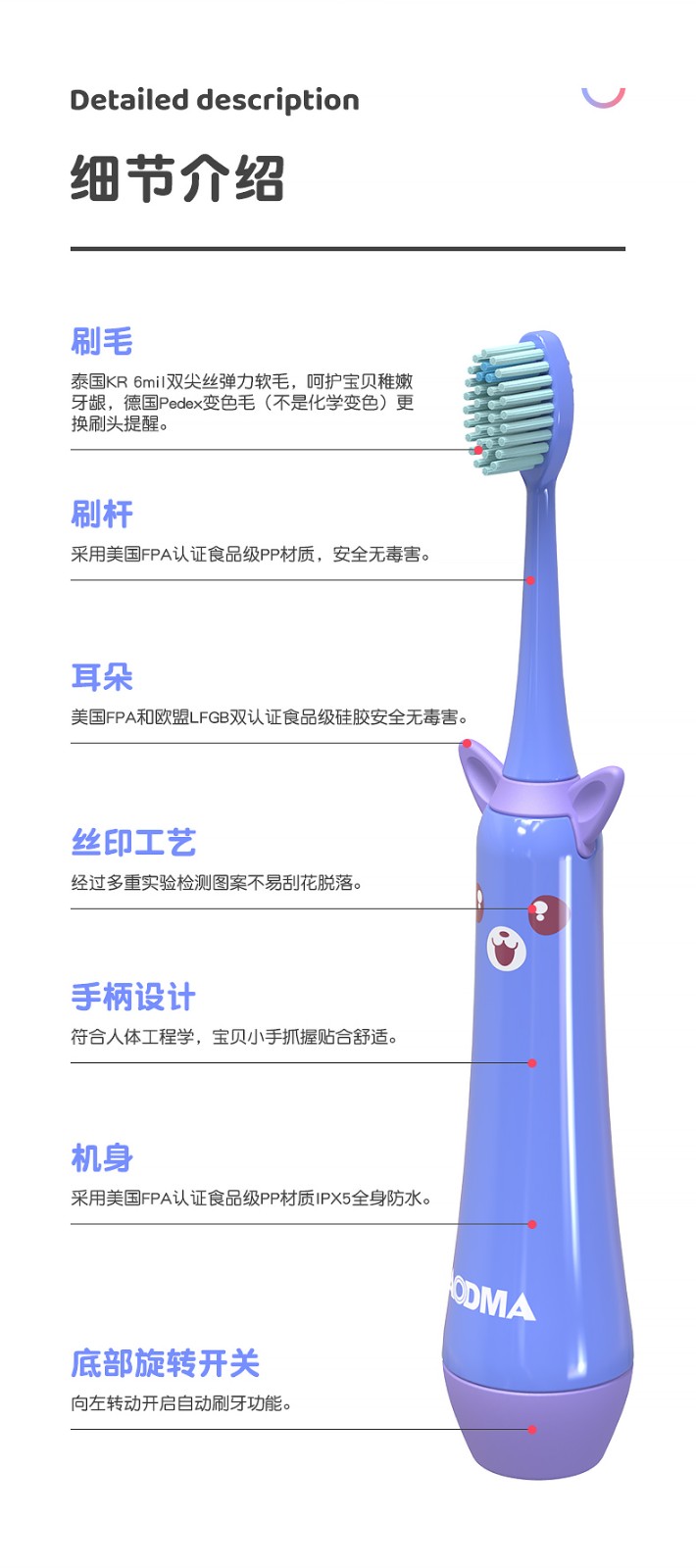 澳得迈(AODMA) 儿童电动牙刷 软毛声不伤牙齿 M1