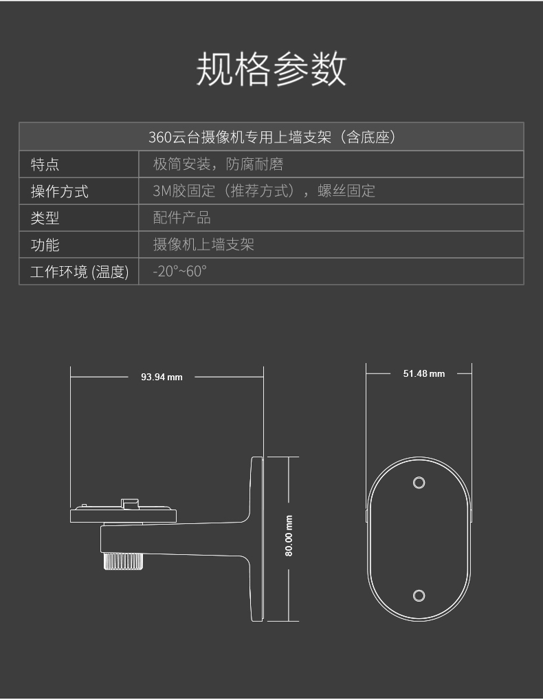 【配件】360云台摄像机专用上墙支架(含底座)