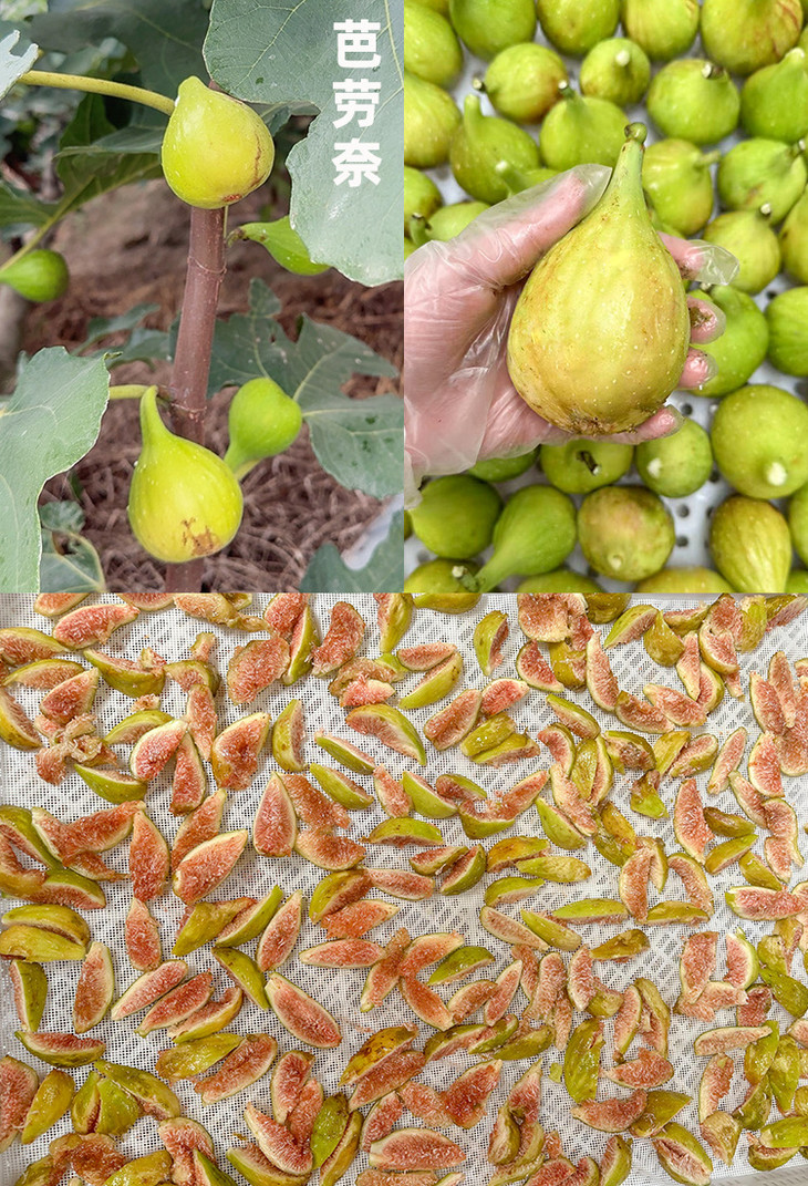 主打品种是芭劳奈和青皮。 依据鲜果时节变化,果干品种会有交替。 品种和口感或有不同,品控始终如一。 两个品种做法一样,均为低温烘烤干,只有无花果。