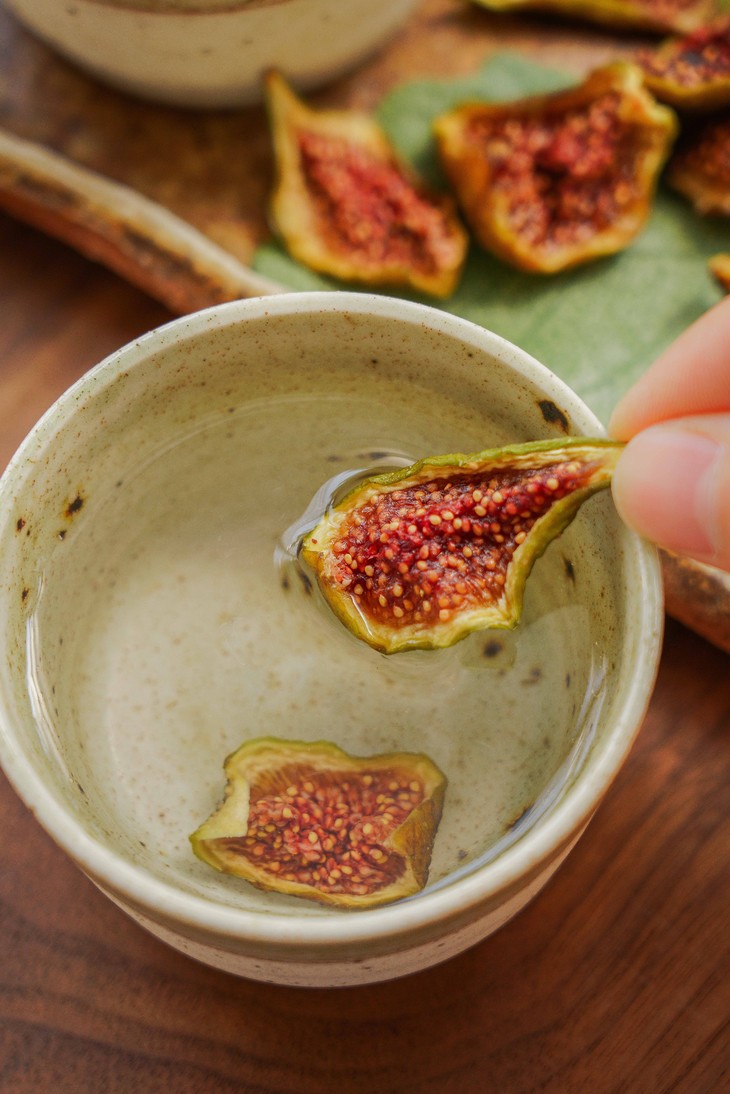 可以泡水饮。 无花果干经过浸泡,口感更接近恢复原果质感,别有风味。 泡出的果饮淡淡清甜,也很润口。 推荐无花果和玫瑰花一起冲泡,对女孩子有特别的好处哇。