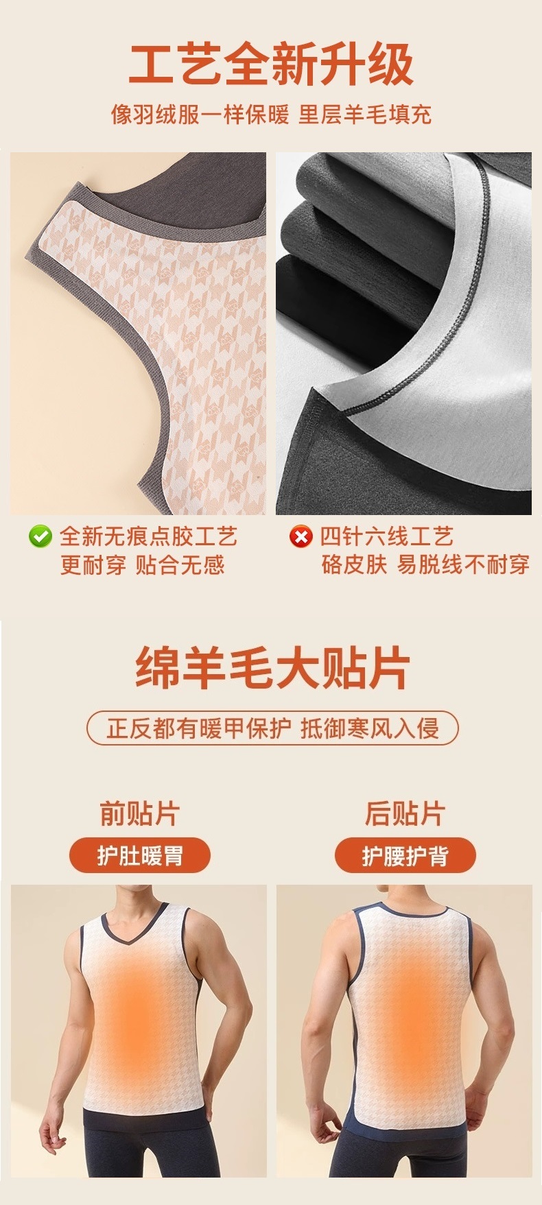 QINGPAI轻湃 全羊毛填充贴片背心常规款