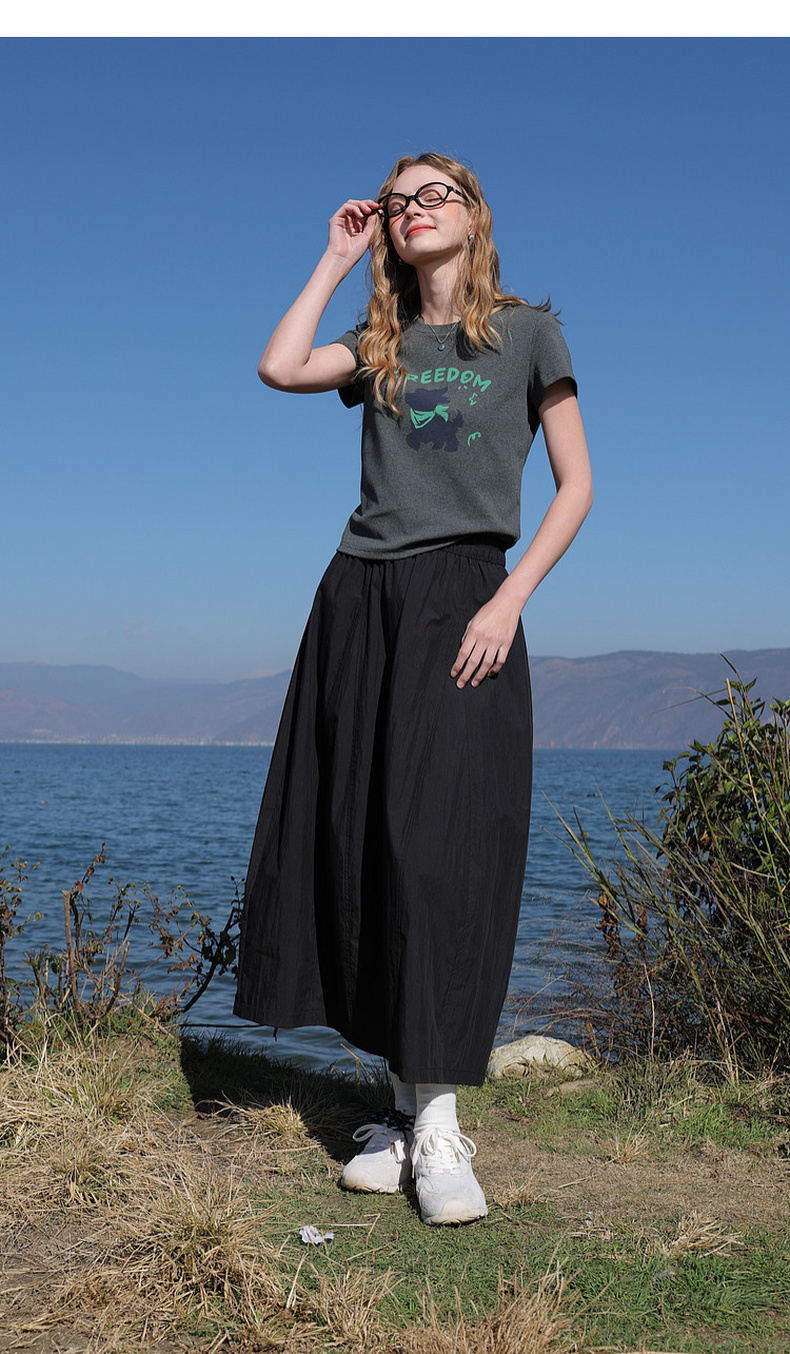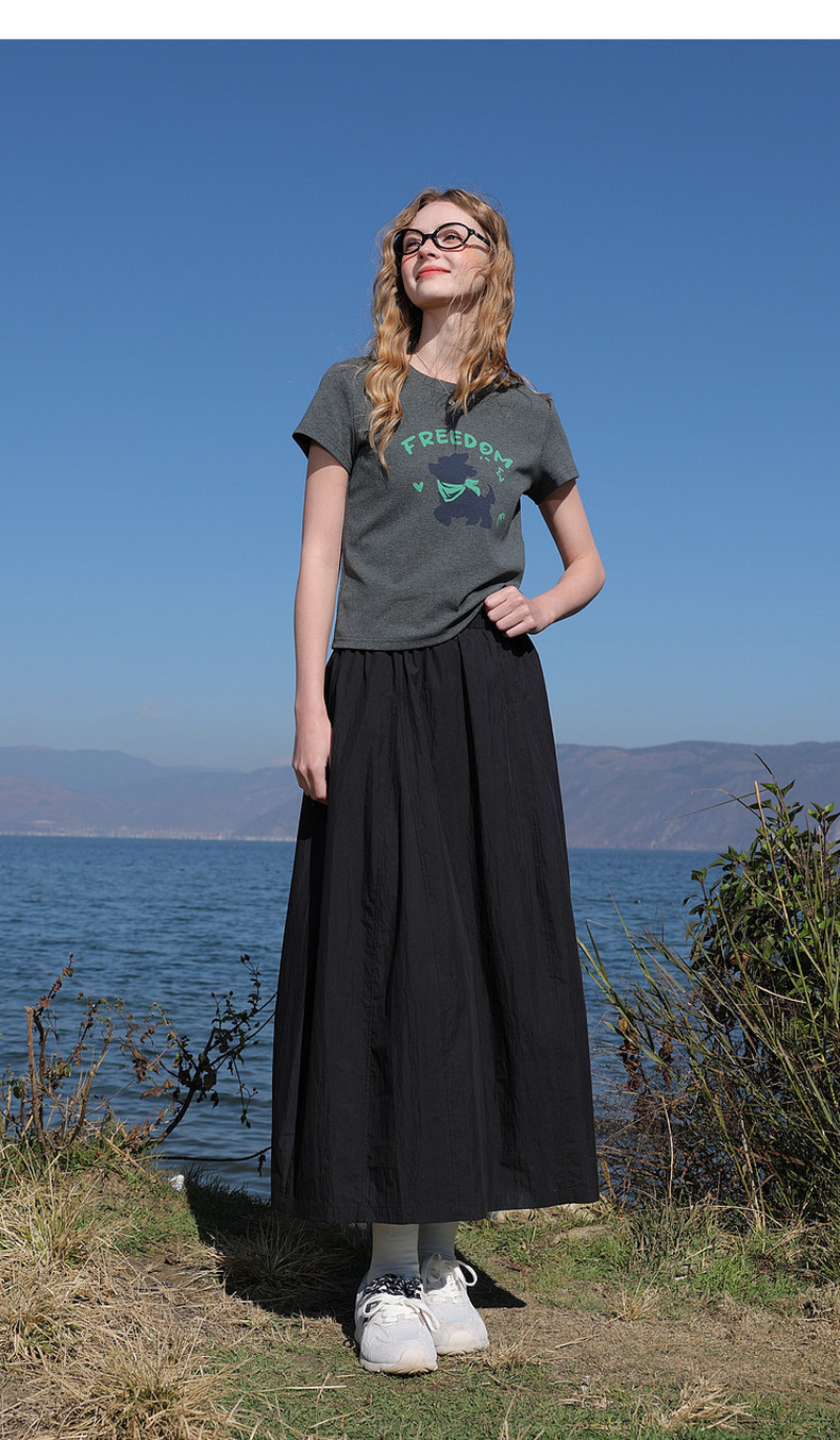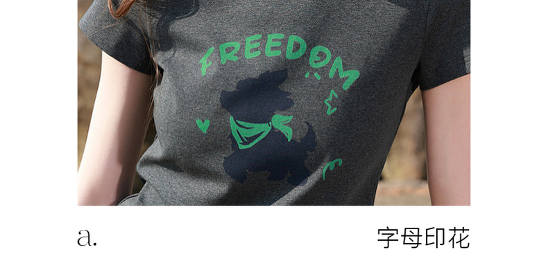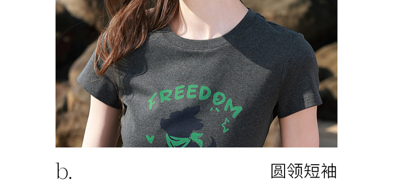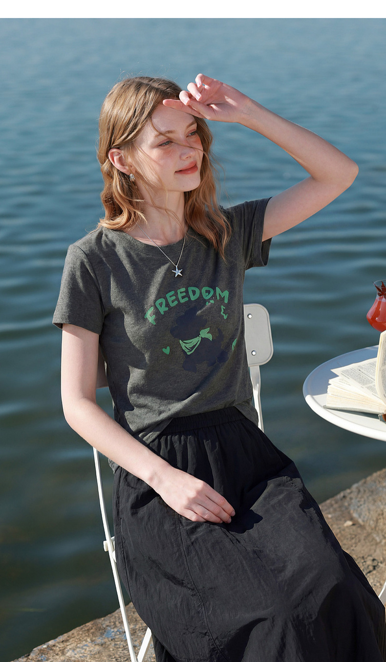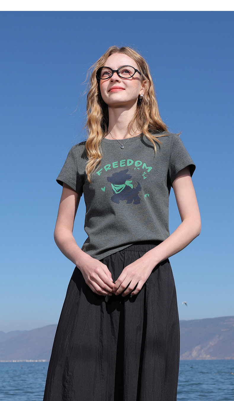 三彩2026夏季新款休闲字母印花T恤修身短款圆领短袖套头衫上衣M