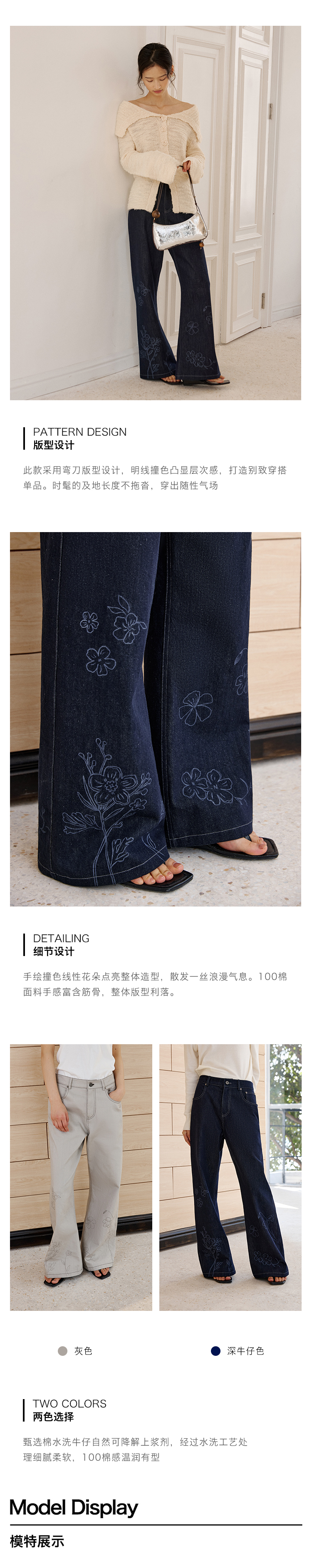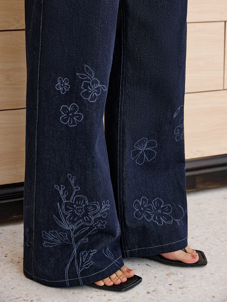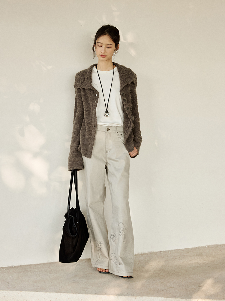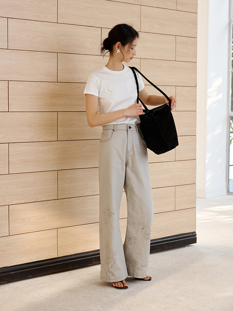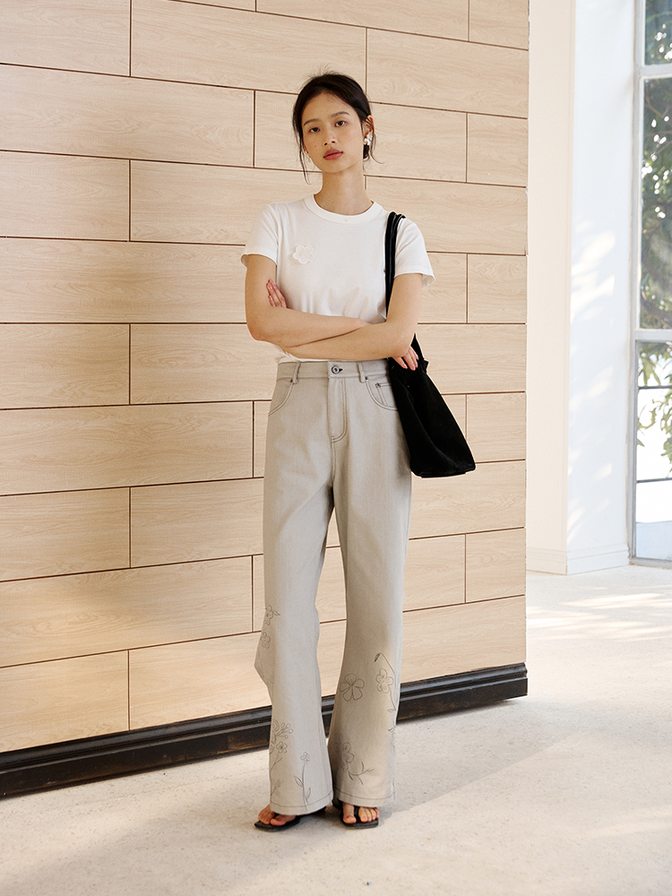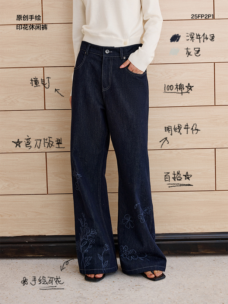 ForPoem 现货 25/SS原创设计明线装饰白描线条印花弯刀休闲裤