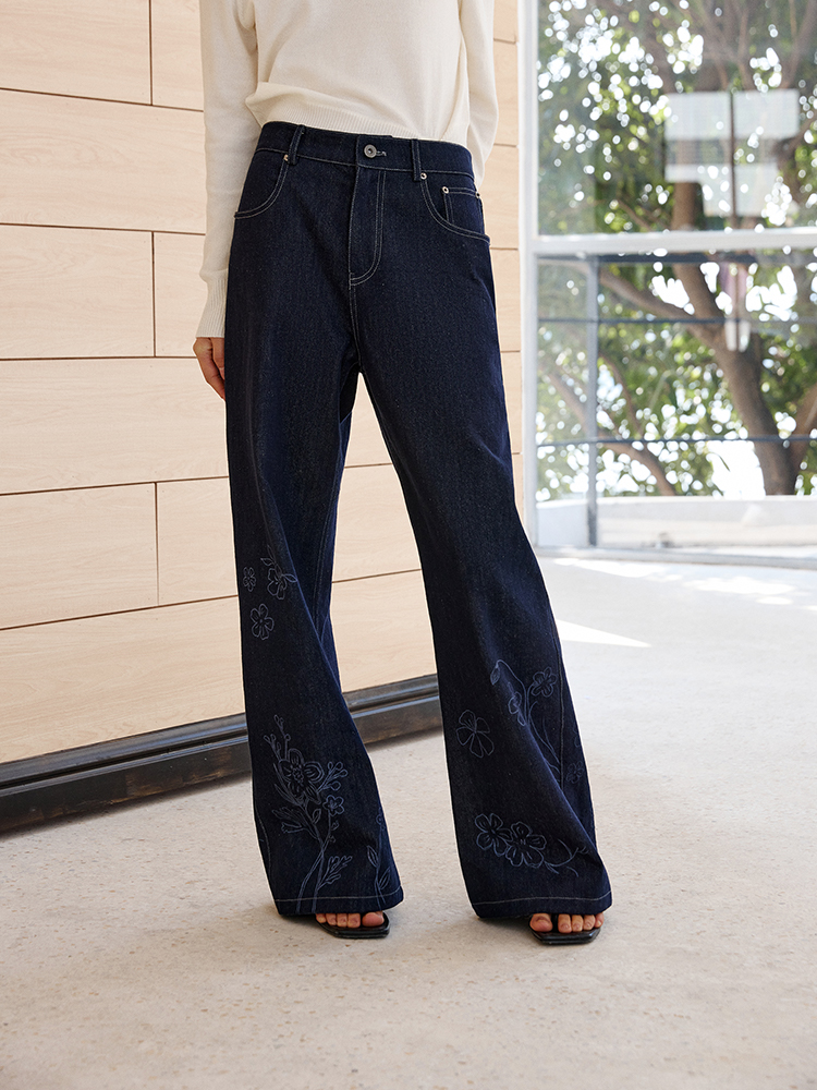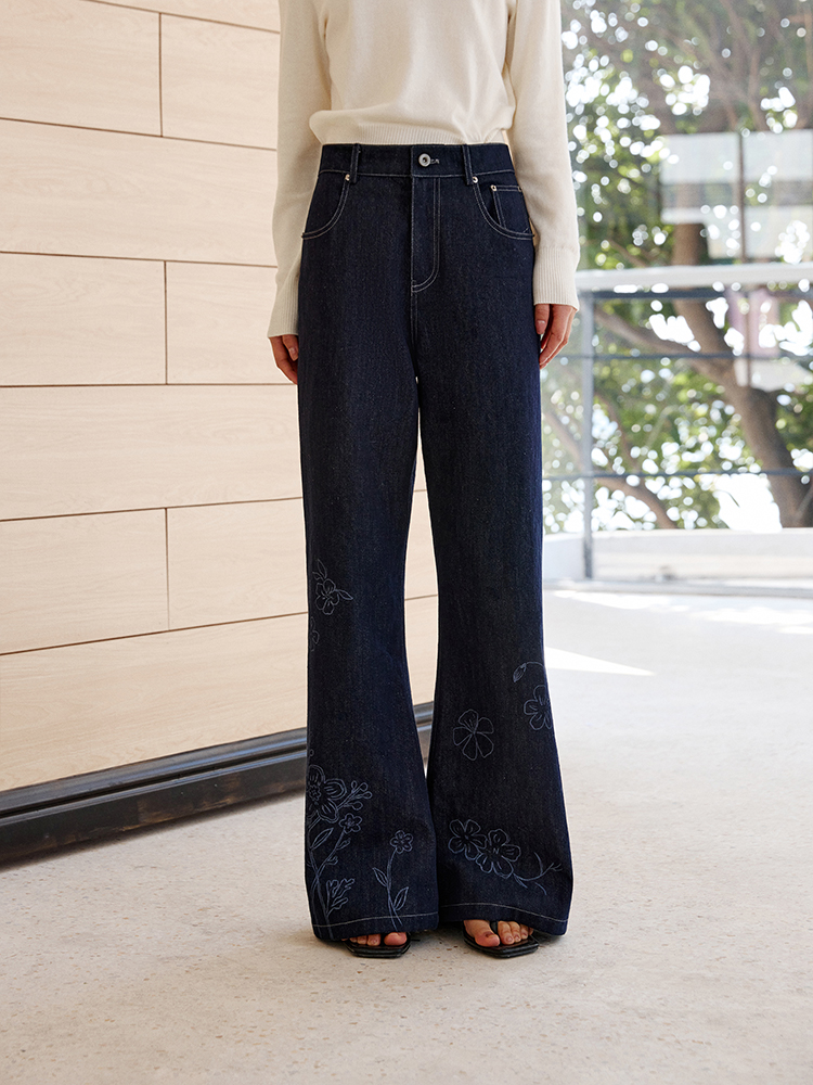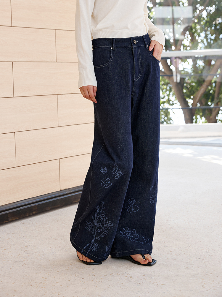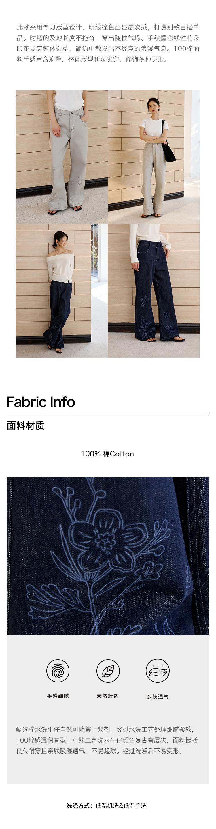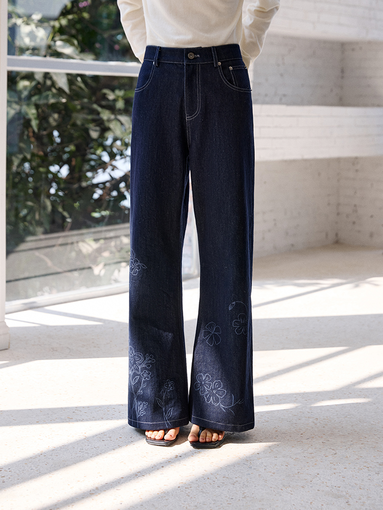 ForPoem 现货 25/SS原创设计明线装饰白描线条印花弯刀休闲裤